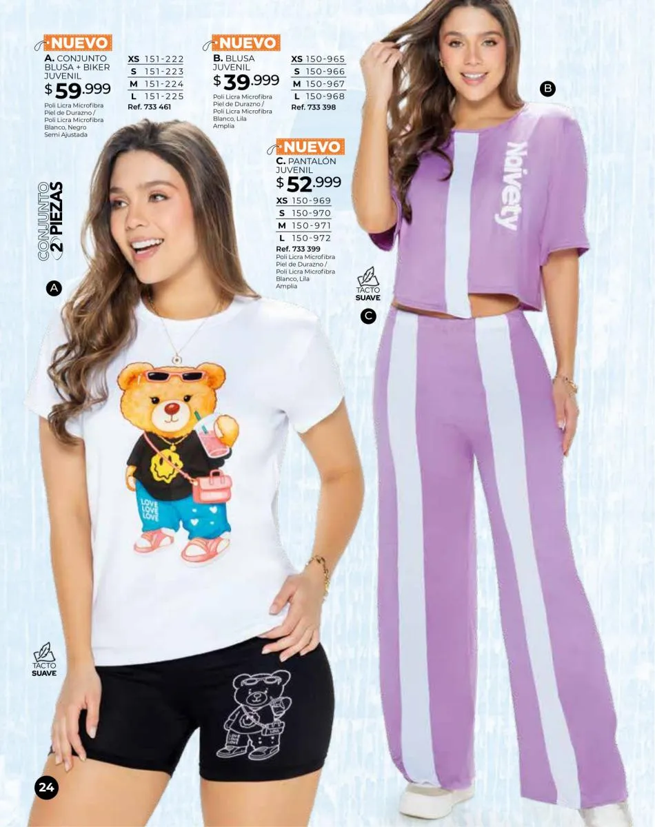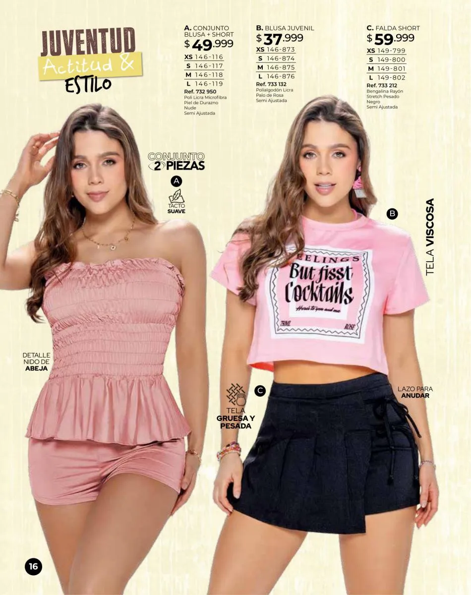 - Blusas crop tops en modelos y colores variados, talla XS/M. Pág. 8 y 9.