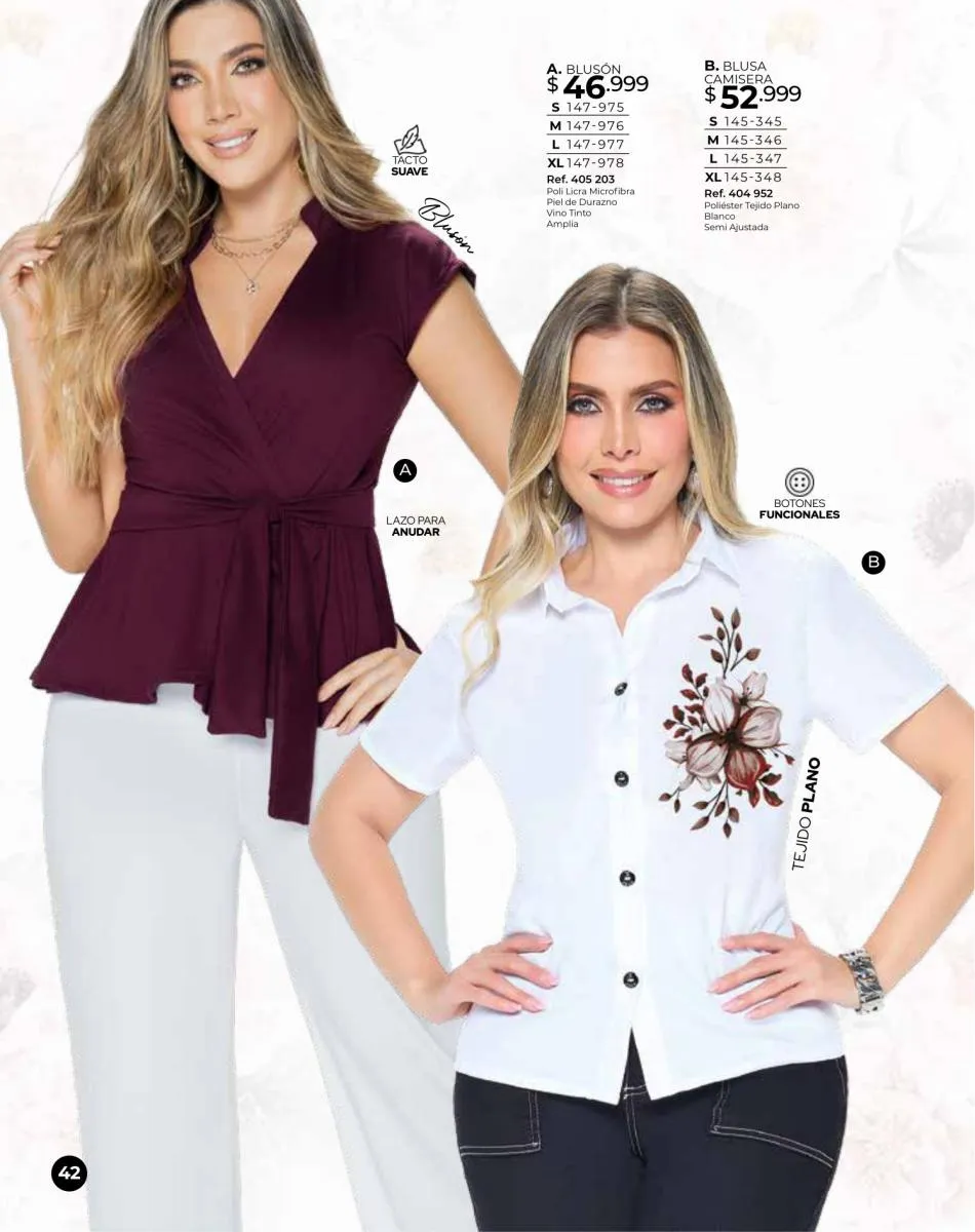 - Blusas en variados colores y diseños, talla XS/M, Pág. 2 y 4.