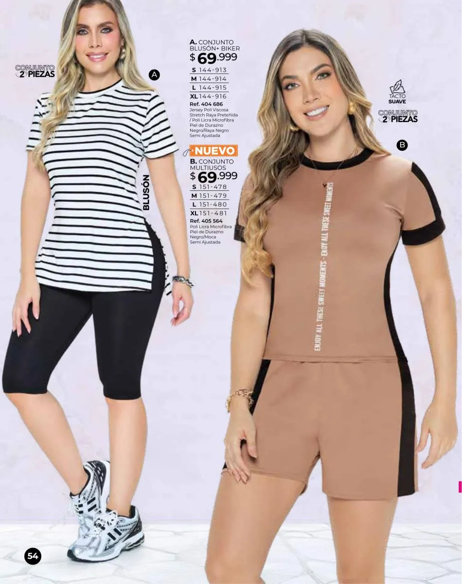 - Conjunto compuesto por crop tops y ciclistas en variados colores y modelos, talla XS/M. Pag. 56.