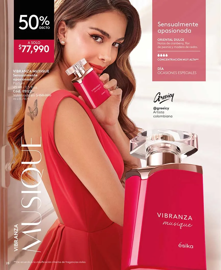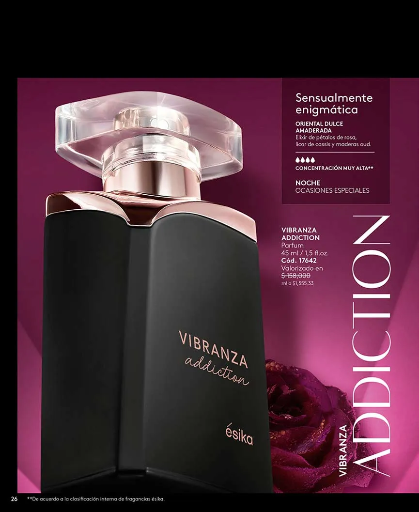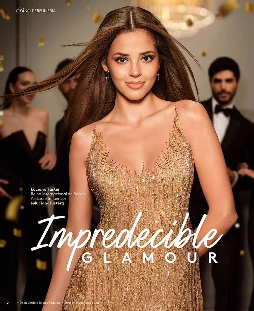 La portada de esta estupenda catálogo Ésika campaña 1 2025 Colombia hace referencia a la fragancia “impredecible”, inspirada en las mejores esencias orientales de sensualidad.