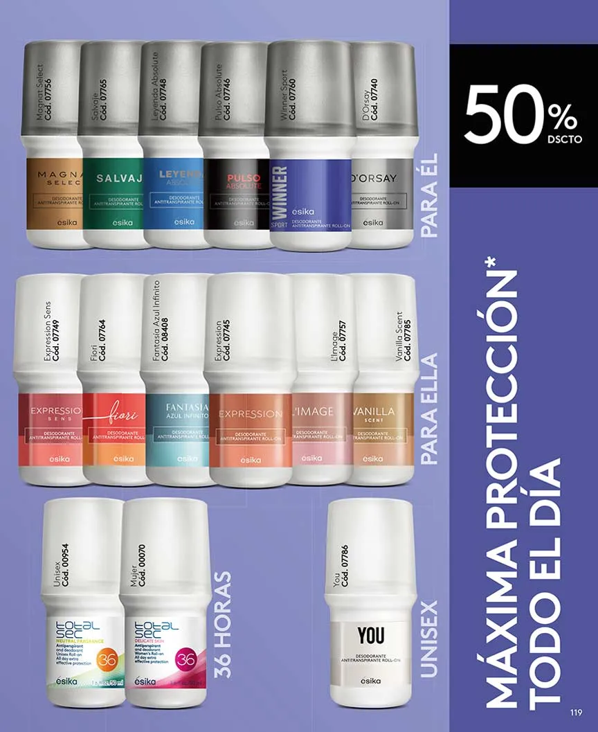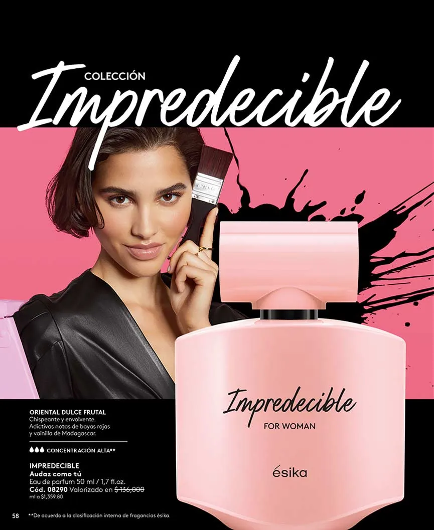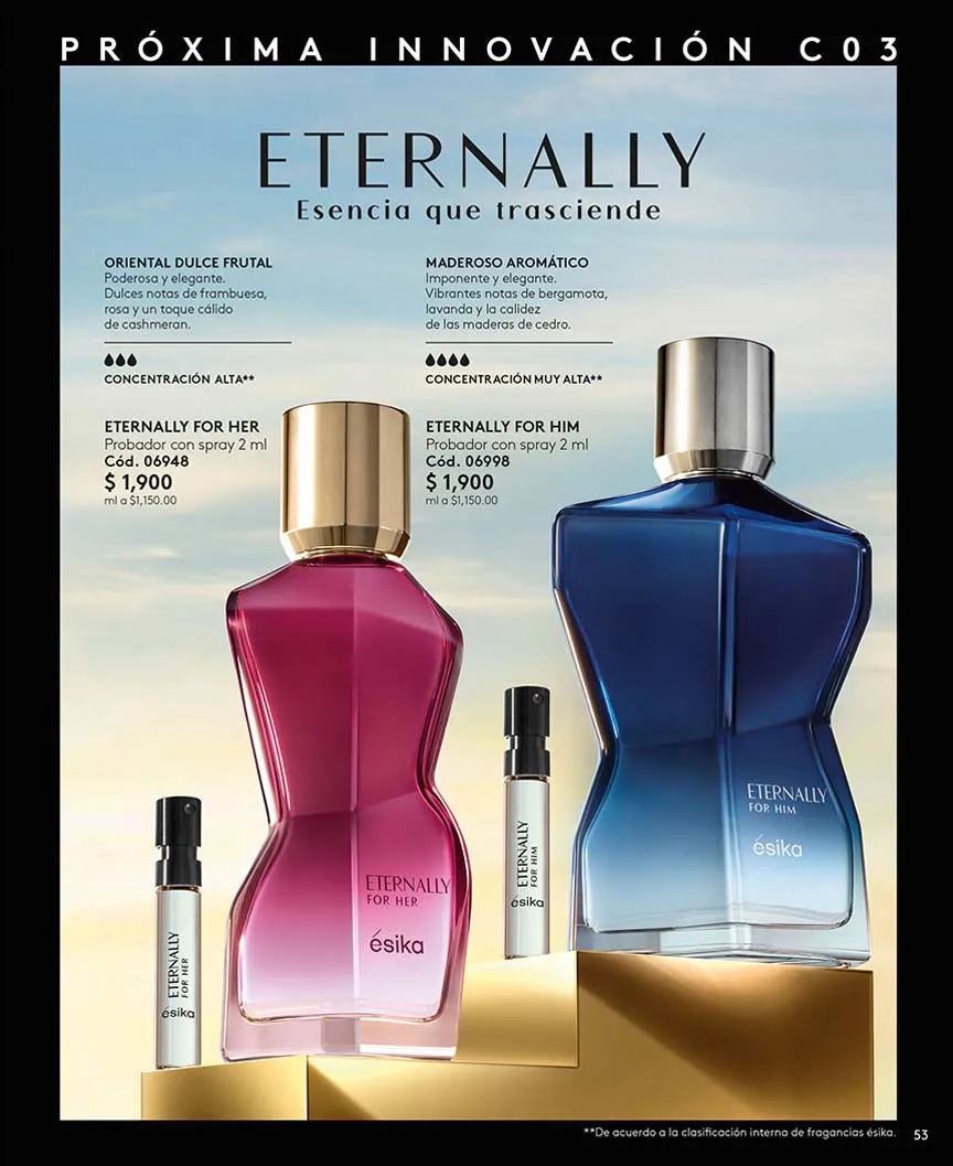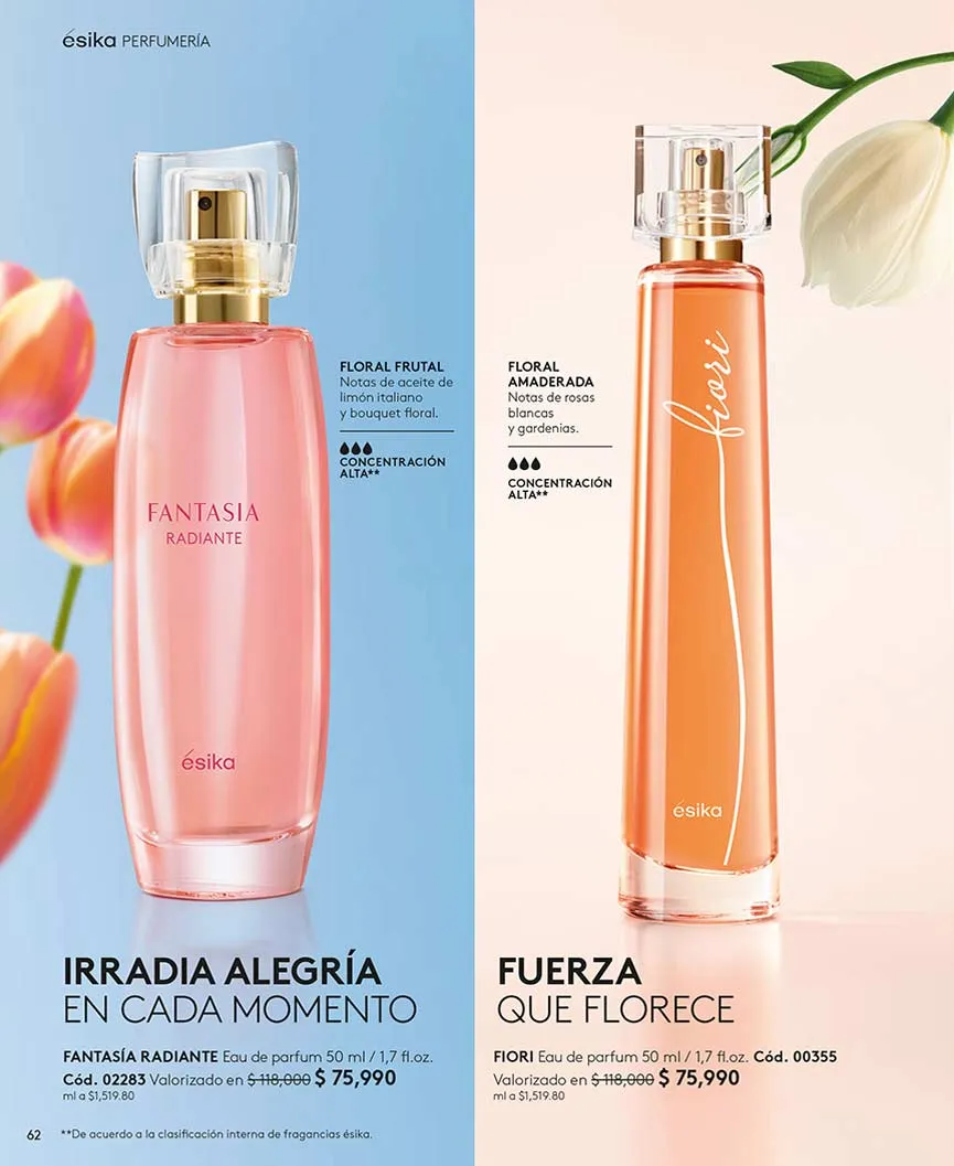 Por último, Ésika no puede dejar de lado sus exquisitos perfumes, para ambos sexos, con aromas que seducirán tus sentidos.