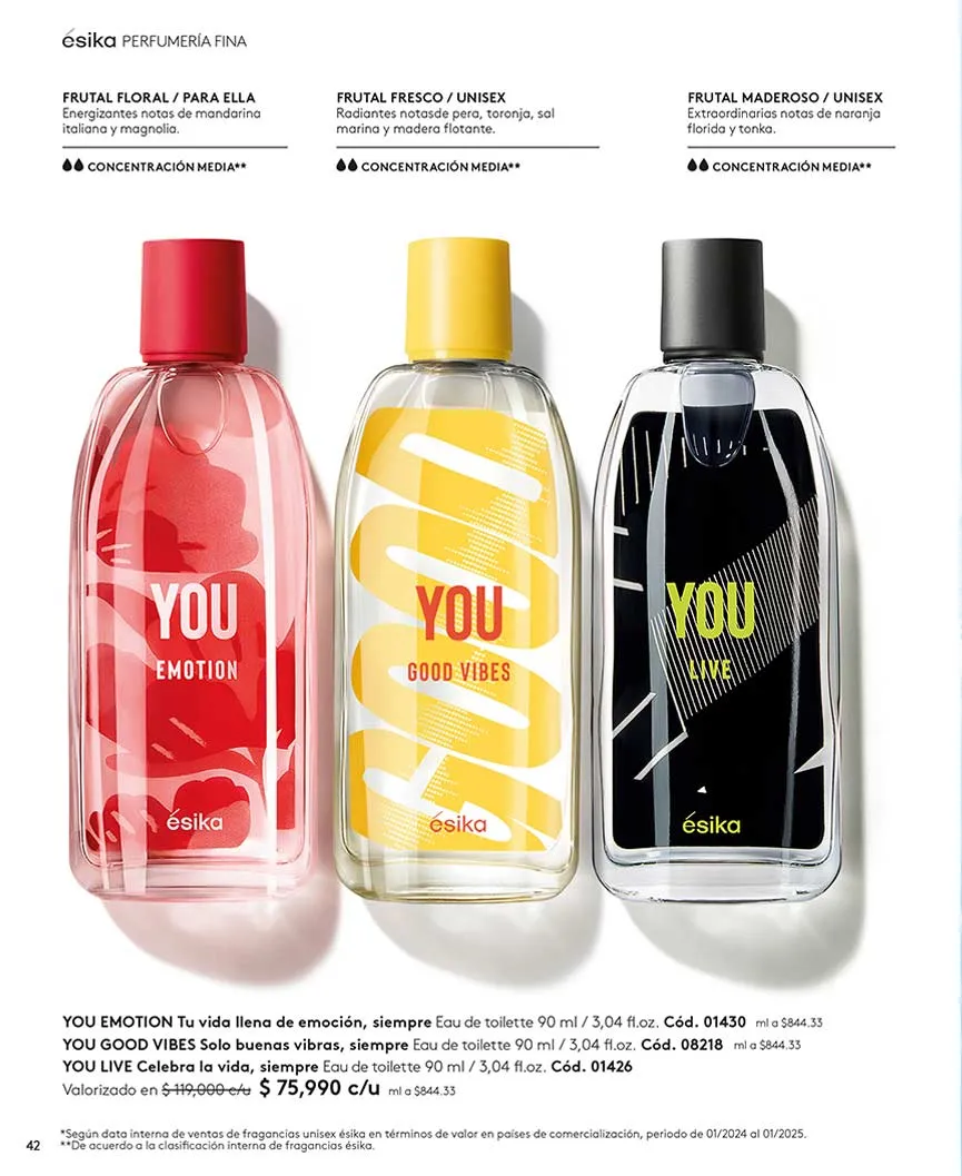 Un catálogo Ésika 5 2026 no está completo sin perfumes para ambos sexos. No dejes de probar las aclamadas esencias You y You Live, cítricas, que cuentan además con combos.