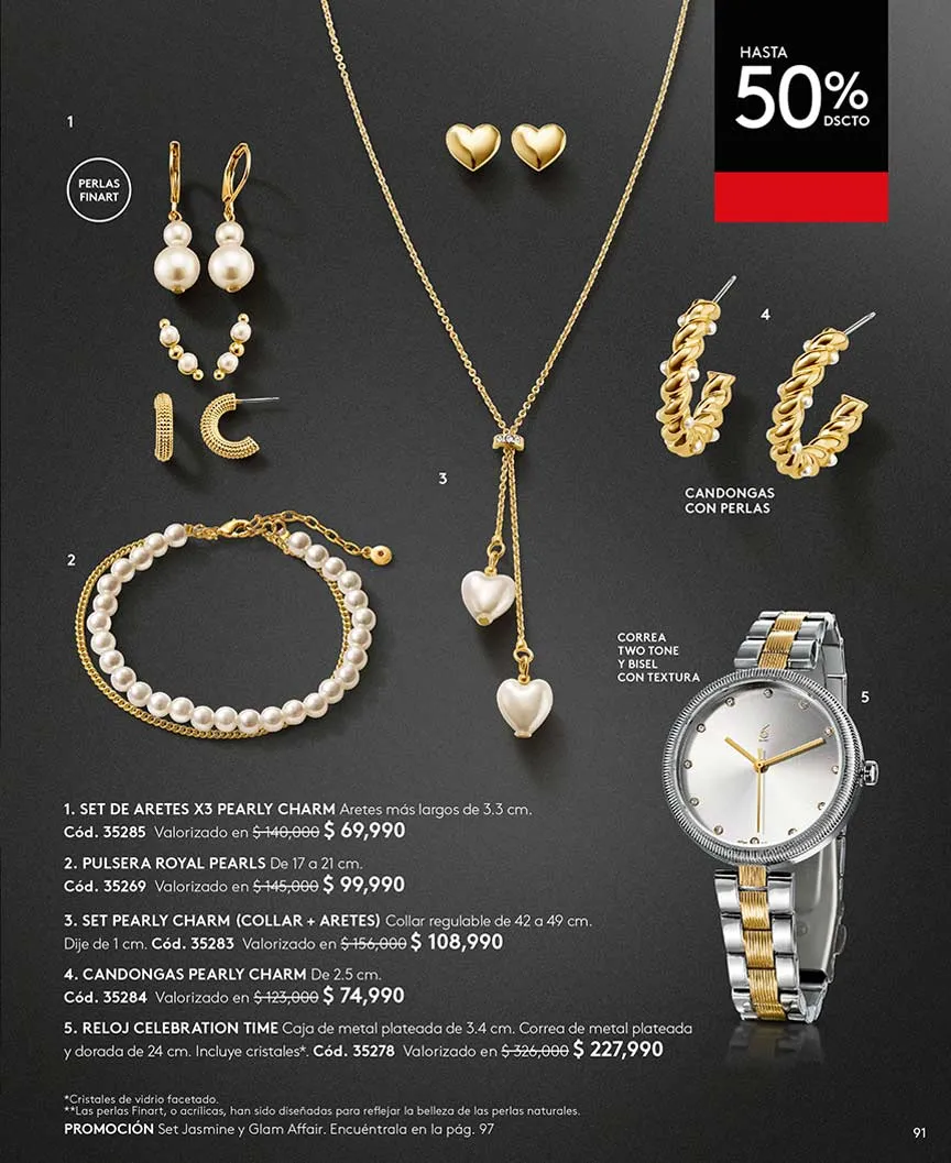 Colecciones interesantes de cadenas, pulseras, argollas, pendientes, aretes, relojes y más, implementando la tendencia layering.