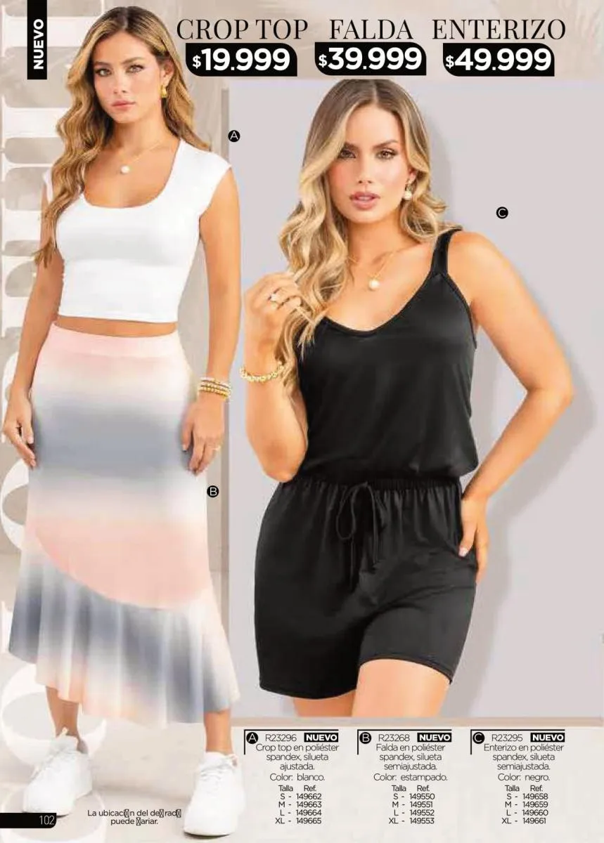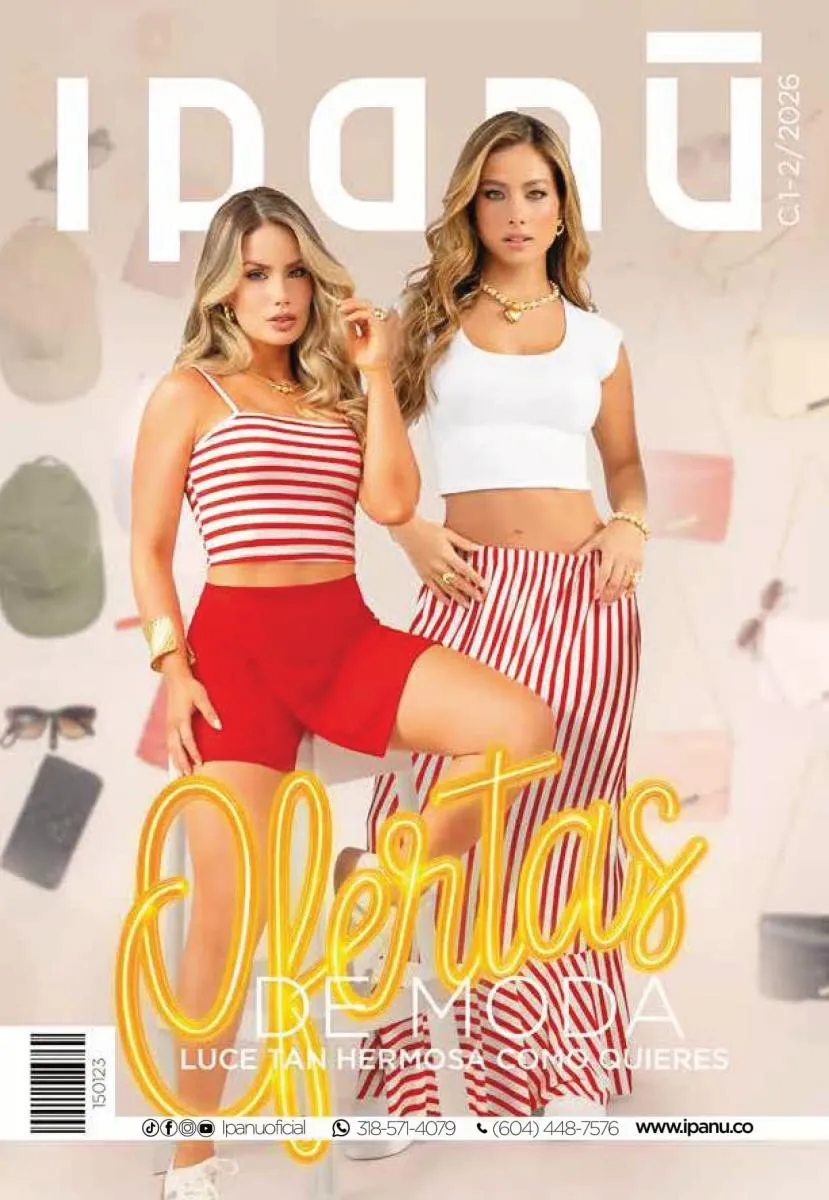 En moda te presentamos precios irresistibles para que tengas el look de tus sueños siempre disponible en tu closet. La tendencia de este catálogo Ipanú campaña 1 y 2 2026 Colombia son los colores vibrantes: rayas, fucsia, y la combinación de ambas. ¡Elige tus prendas preferidas y arrasa con todo! La cuerina es una tendencia que promete quedarse, una prenda en cuerina es una prenda completamente sexy y sofisticada, la cuerina tiene una manera única de resaltar tus curvas, encuentra un look para romper corazones en la página 70 y conoce el diseño exclusivo que Ipanú te presenta en la página 74 en esta catálogo Ipanú campaña 1 y 2 2026: un pantalón de cuerina semiajustado, que es único.