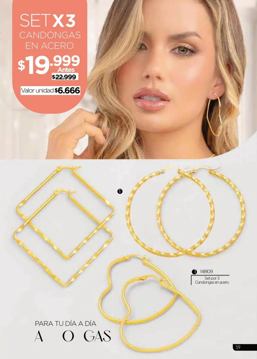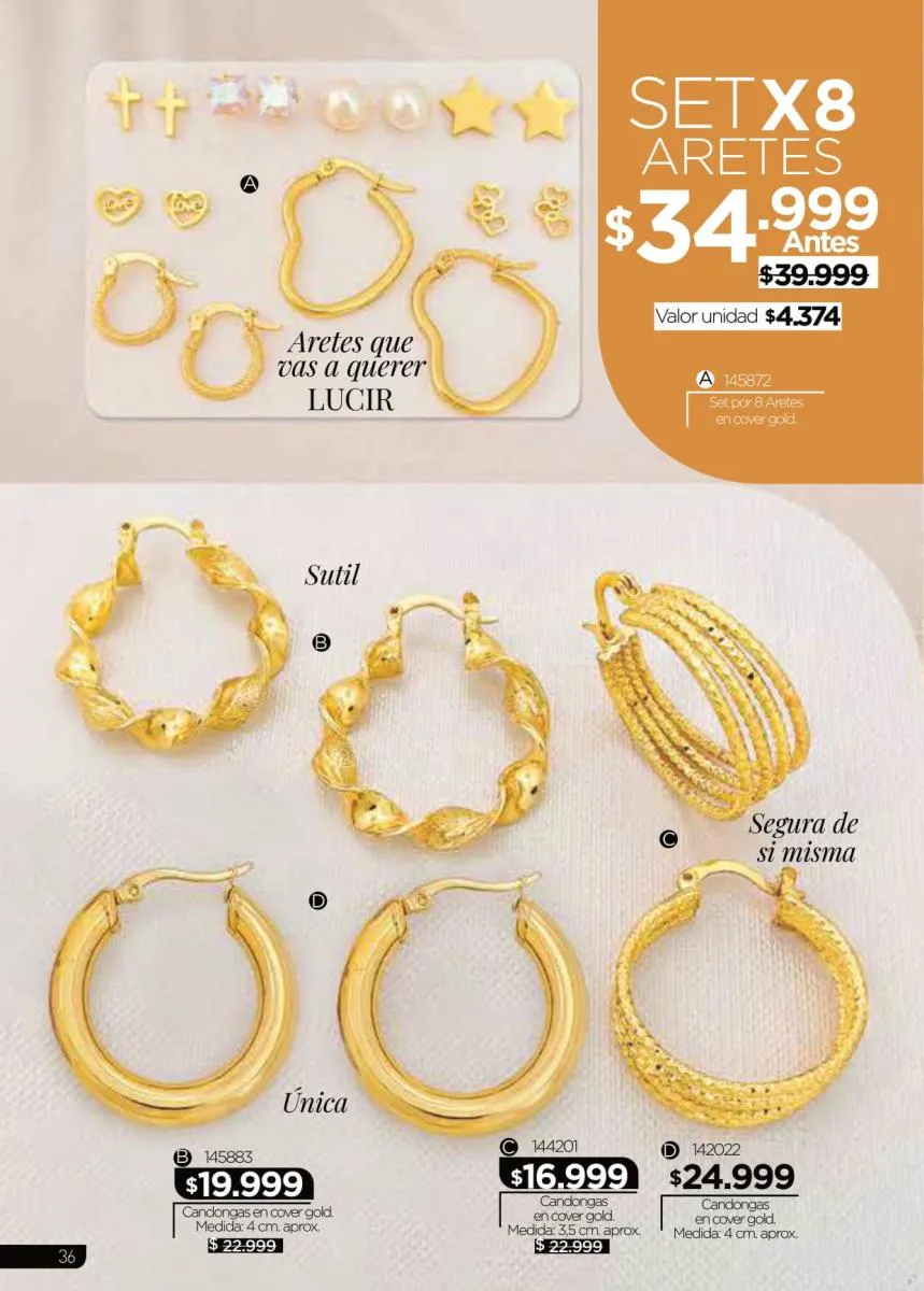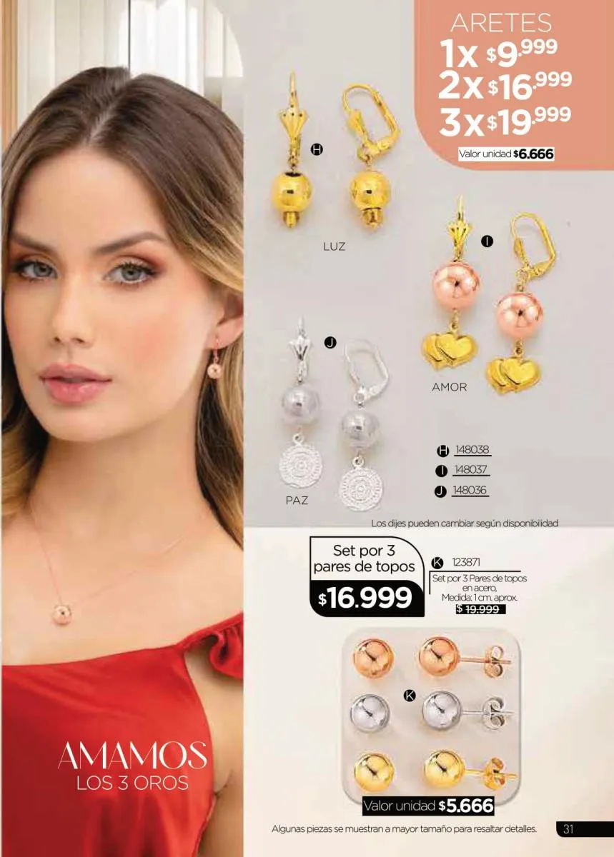 También te acercamos propuestas en tonos dorado y rojo, para usar juntas o por separado, ideales para resaltar la belleza de tu pasión más profunda. Encuentra promociones exclusivas para llevar tres pares de candongas: los aretes son una parte elemental a la hora de complementar tu look, tú eliges dónde llevas la atención en cada outfit y los aretes siempre serán una luz extra en tu mirada y un aliado de tu peinado, elije tus preferidos, ¡y brilla!
