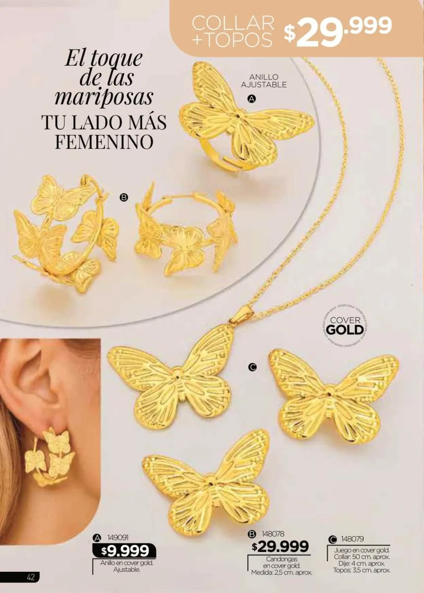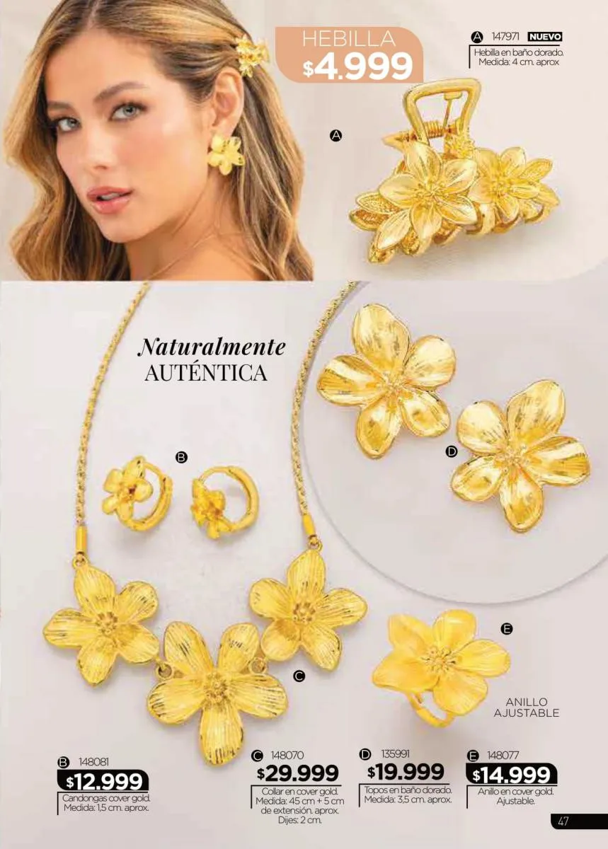 En baño de oro encontrarás cadenas, anillo ajustable, variedad de joyas y una exclusiva body chain: una cadena que descansa sobre las curvas de tu silueta de una manera seductora y femenina. En combinación dorado y azul encontrarás aretes increíbles, collar, para combinar y usar de todas las maneras que te sugerimos más las que tú quieras, y candongas únicas, elige azul para tu look de bronceado, el azul es un color sofisticado que inspira concentración y serenidad.