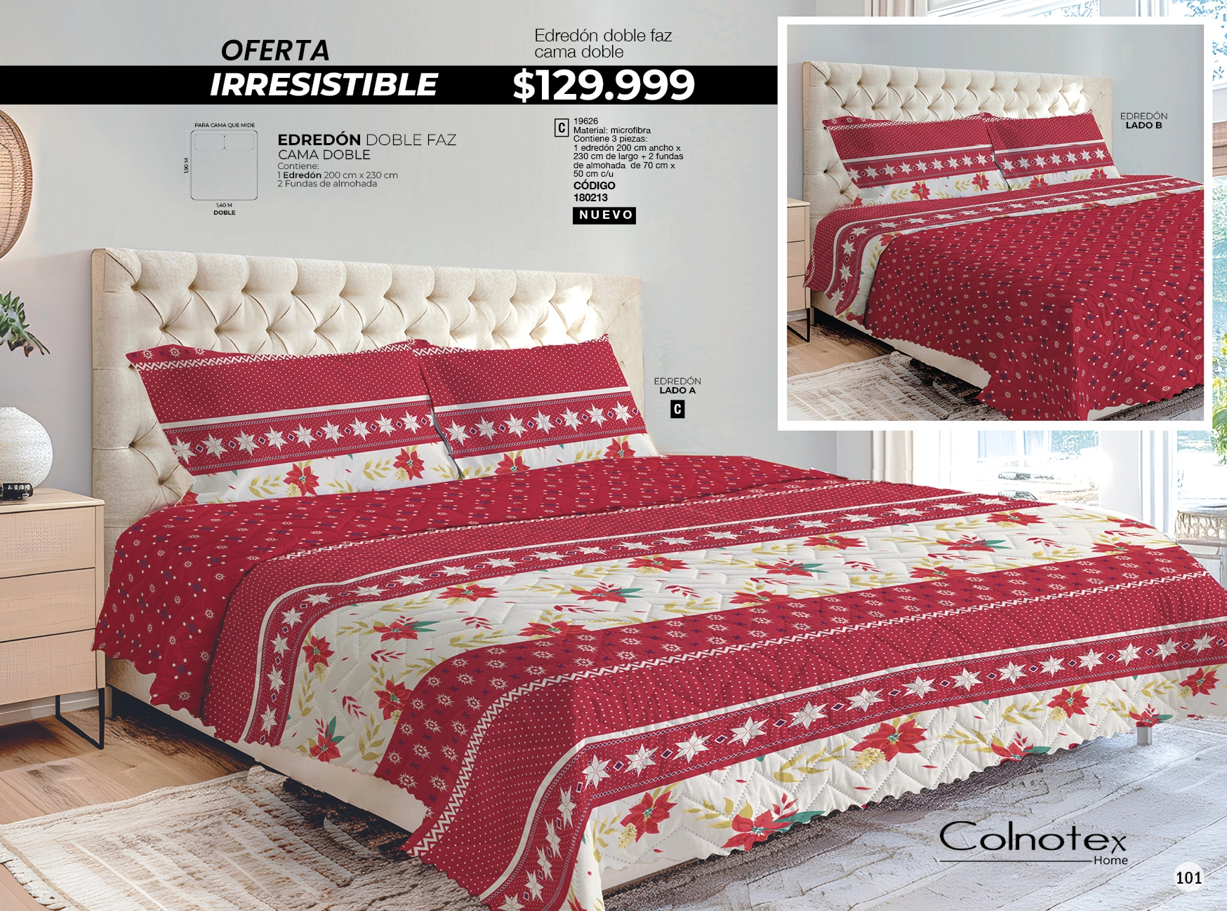 - Juego de sábanas de tonos y estampados navideños.