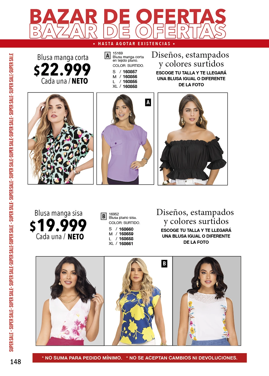 - Si prefieres darle un toque de color a tus atuendos, la sugerencia son las telas estampadas. En este catálogo Juana Bonita sugiere pantalones, blusas y vestidos de fondo blanco con patrones de colores inspirados es “animal print”.