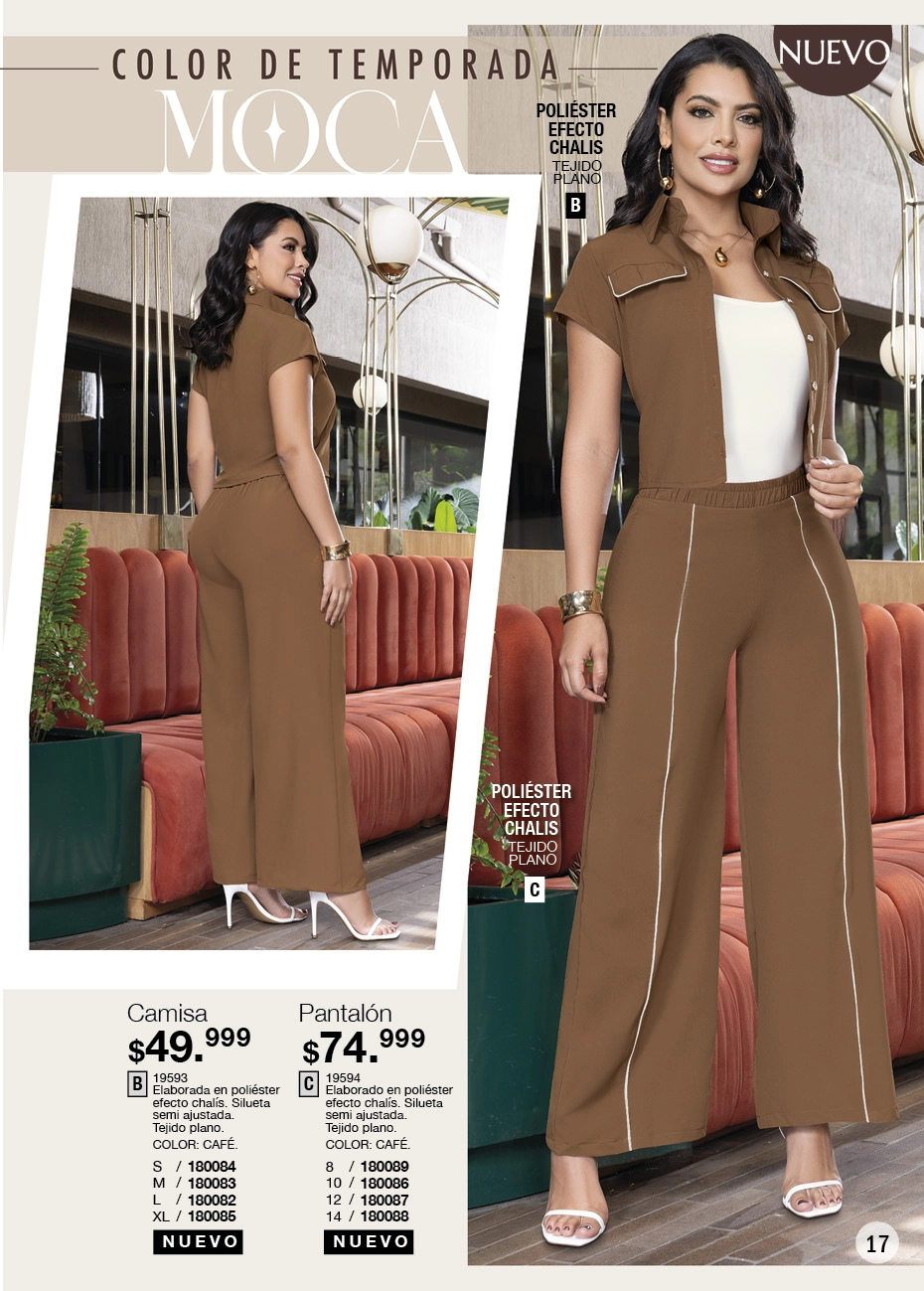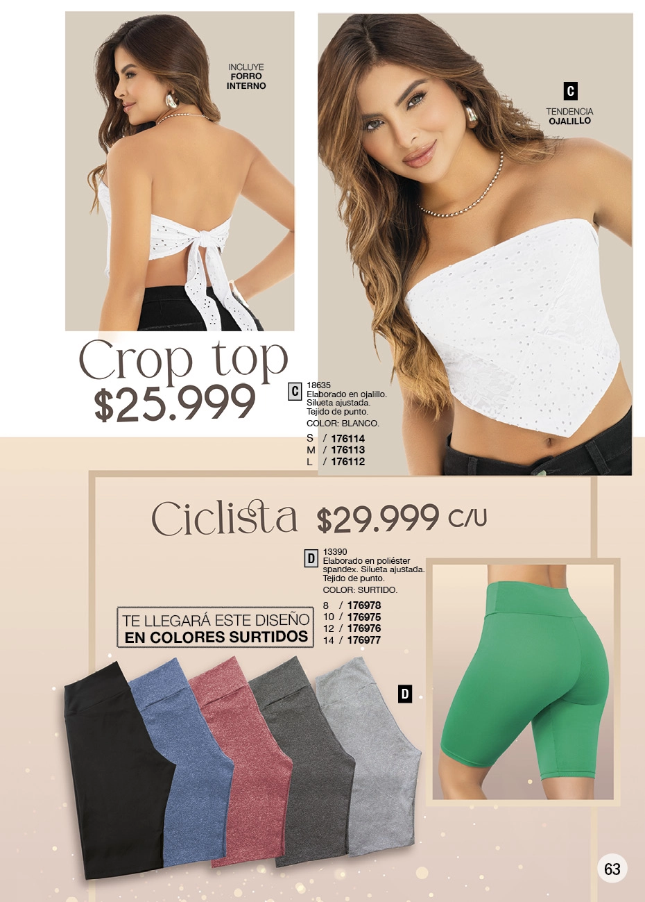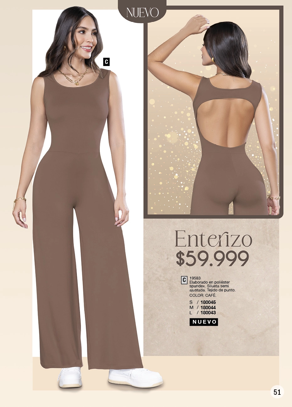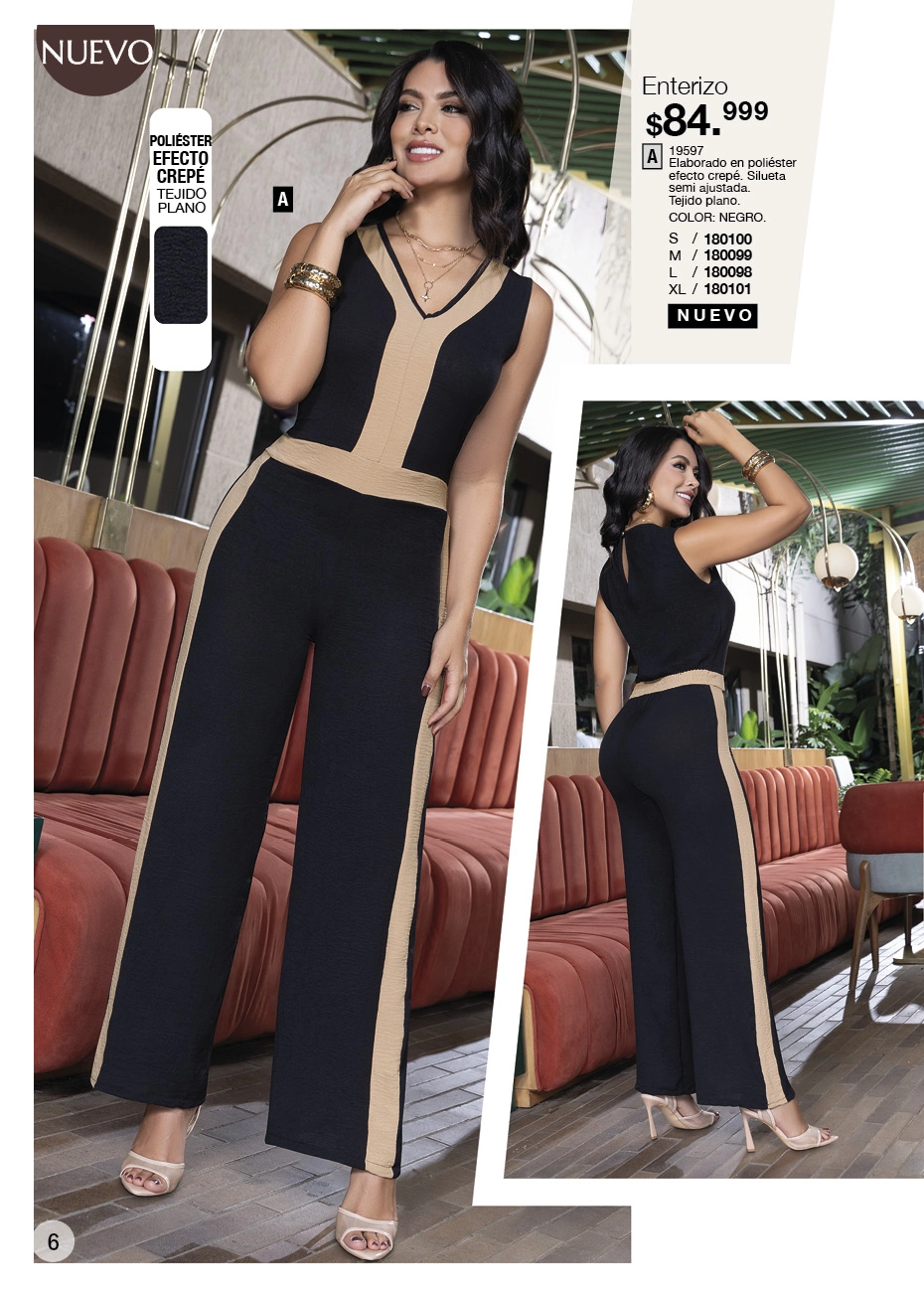 - Y si quieres lucir una figura estilizada, el negro sigue dominando la pasarela de la moda actual. Lo que este Juana Bonita campaña 16 2025 Colombia te aconseja son los conjuntos de blusas con brillo y leggings o los vestidos Los enterizos y pantalones toreros son otro que debes tener, sí o sí, en tu clóset.