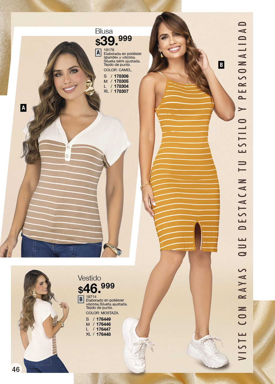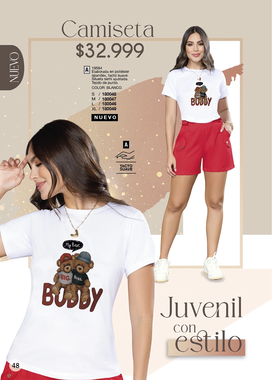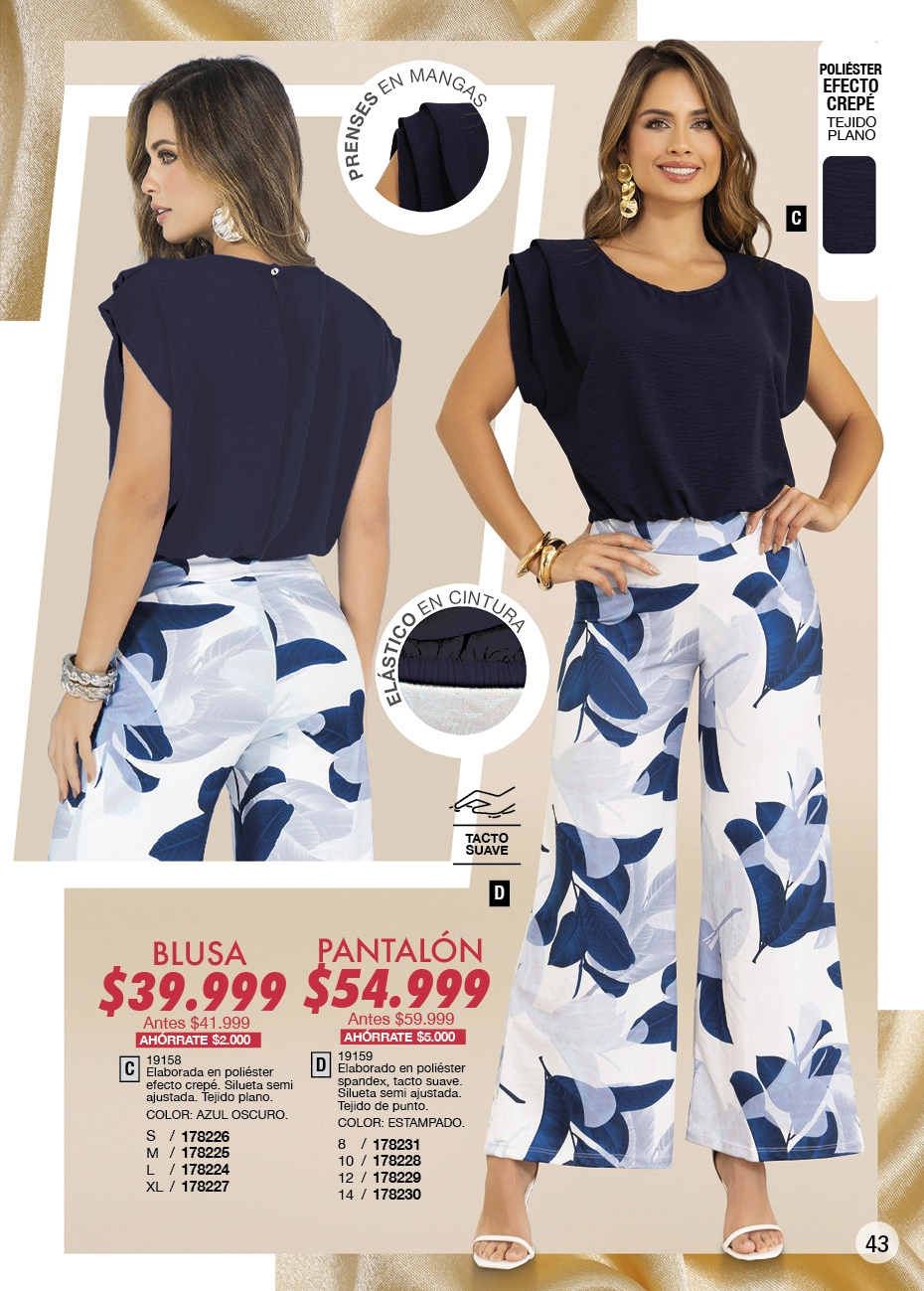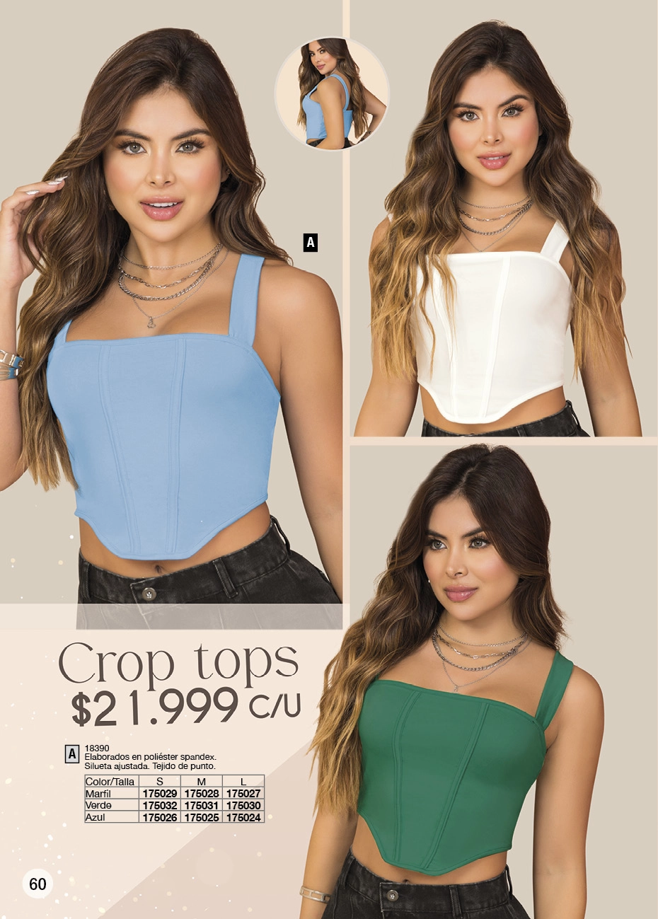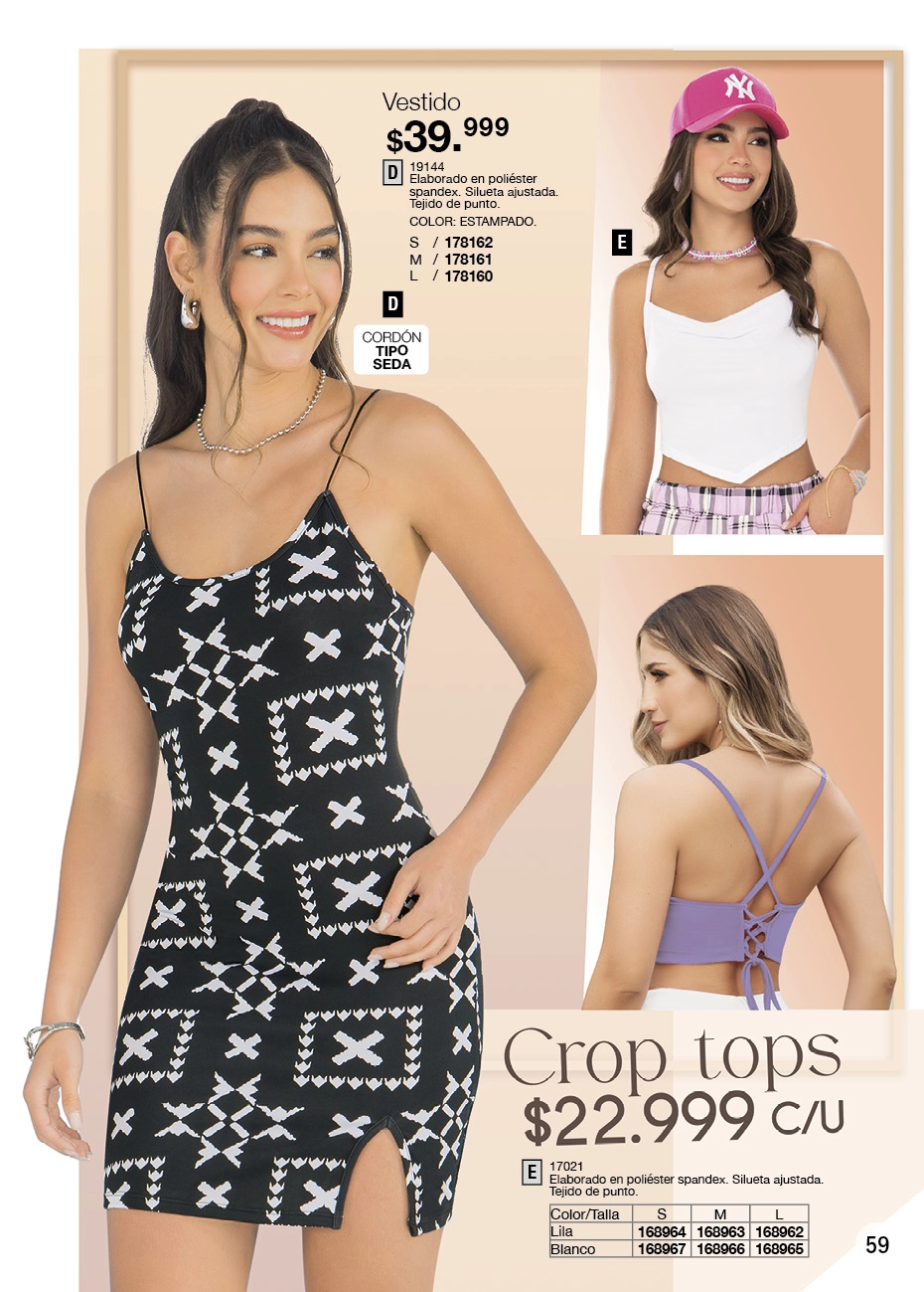 - Y si quieres lucir una figura estilizada, el negro sigue dominando la pasarela de la moda actual. Lo que este Juana Bonita campaña 16 2025 Colombia te aconseja son los conjuntos de blusas con brillo y leggings o los vestidos Los enterizos y pantalones toreros son otro que debes tener, sí o sí, en tu clóset.