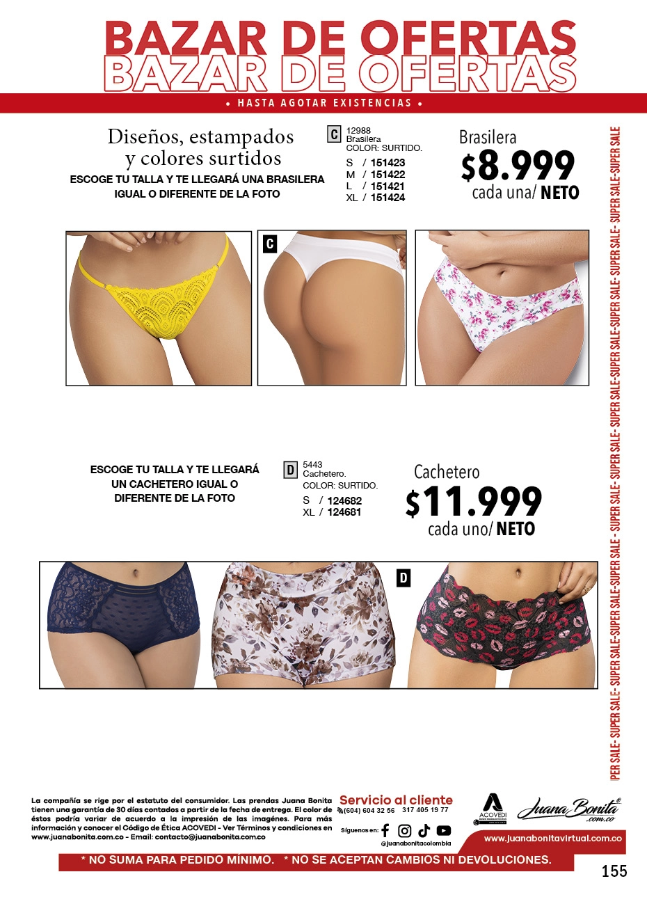 El catálogo Juana Bonita campaña 5 2026 Colombia, en el apartado íntimos te presenta la más variada colección de prendas íntimas de diferentes modelos, diseños y colores.