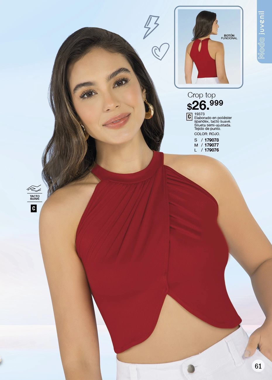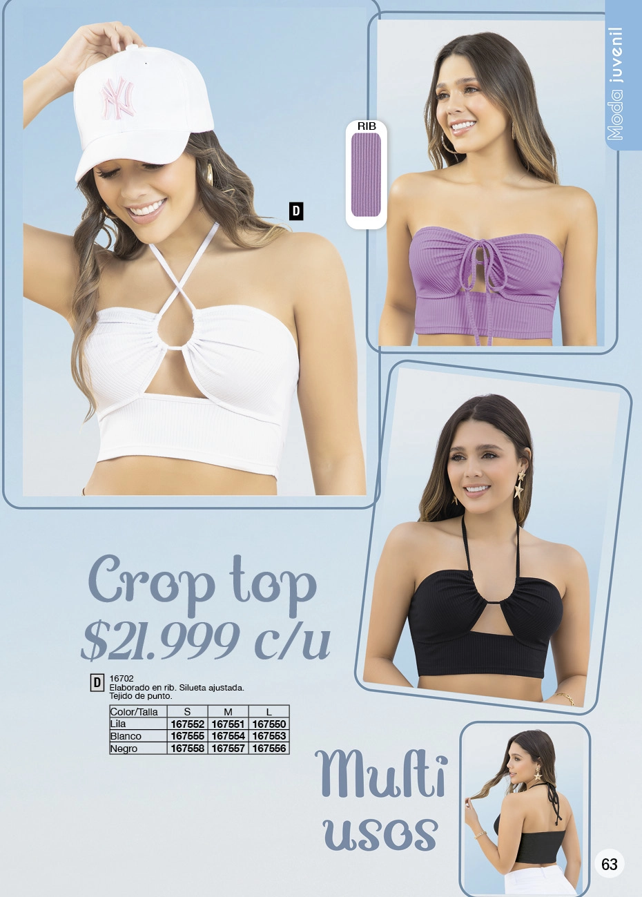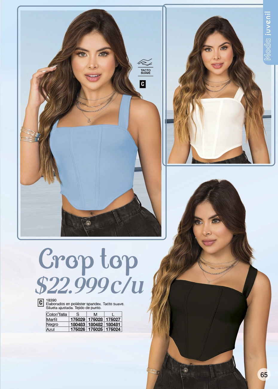 - Crop tops silueta ajustada en diversos colores y todas las tallas en oferta especial.