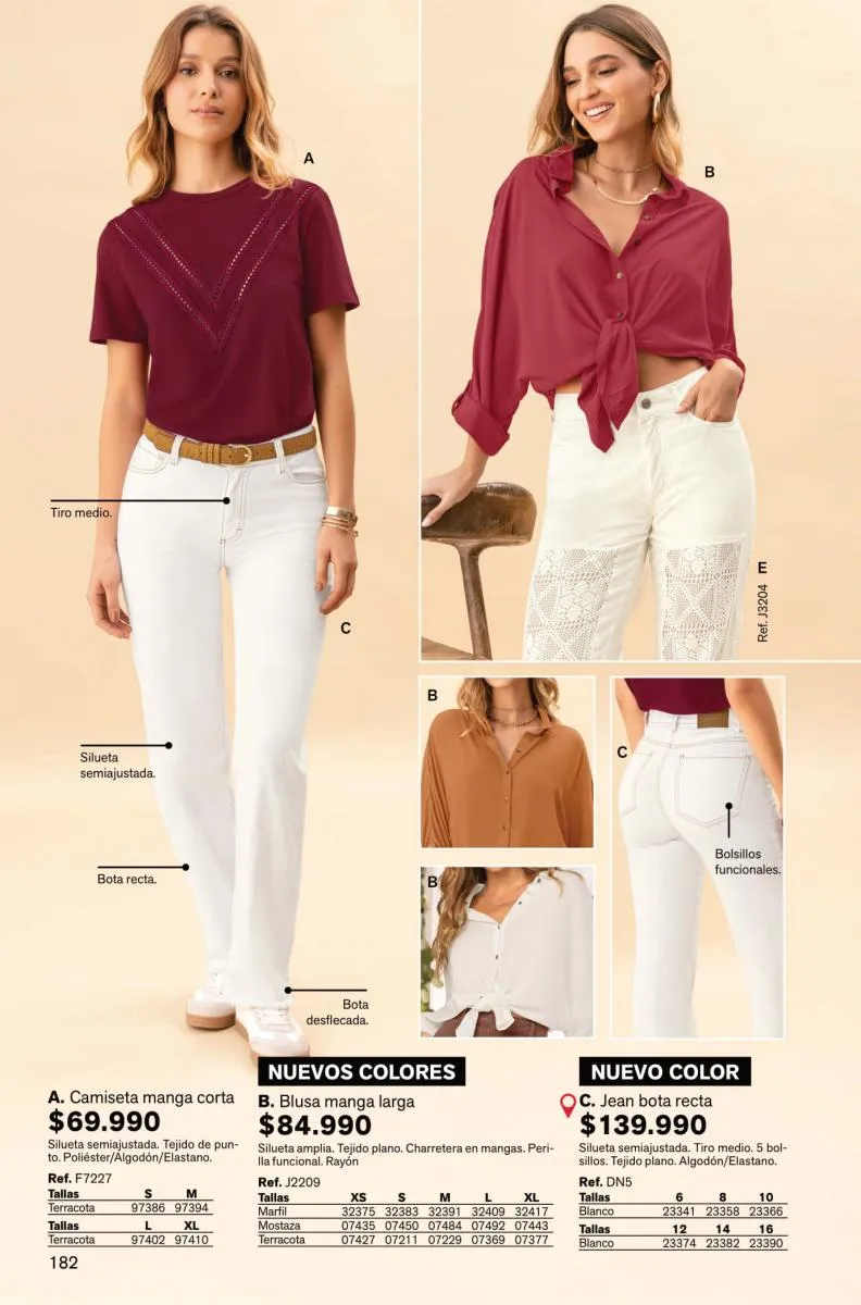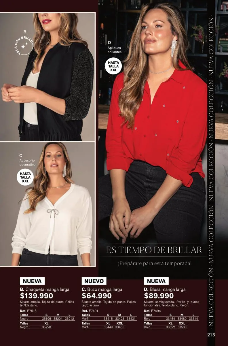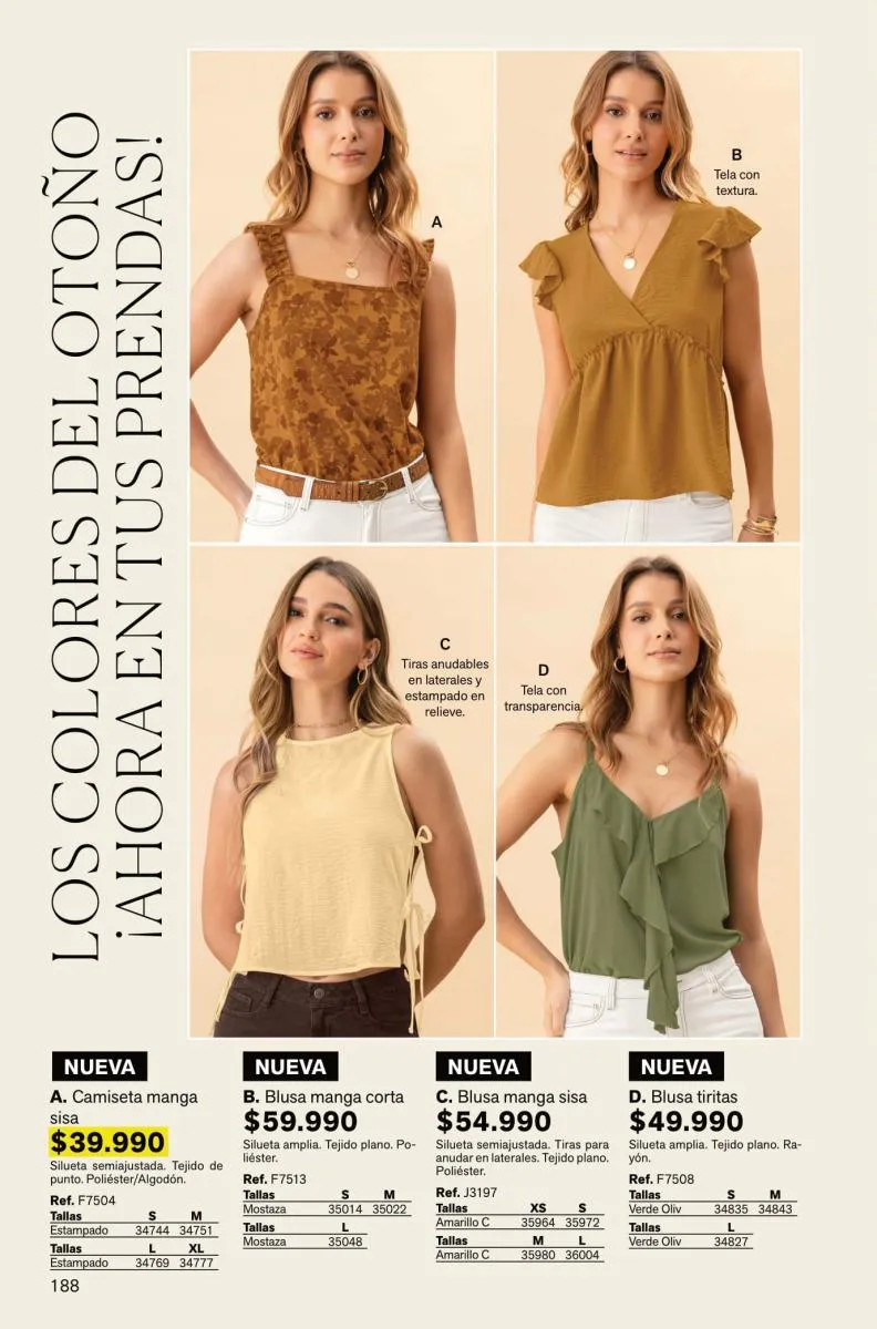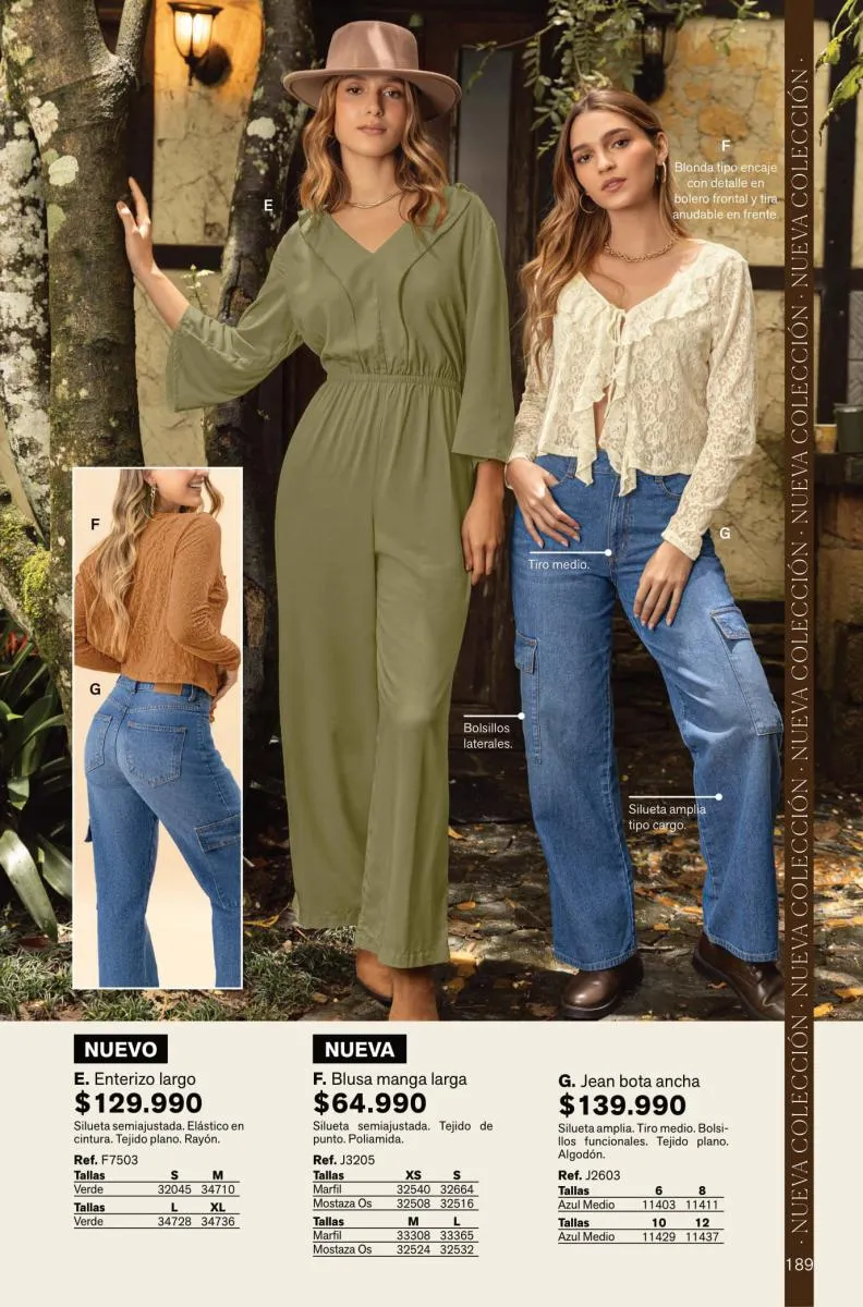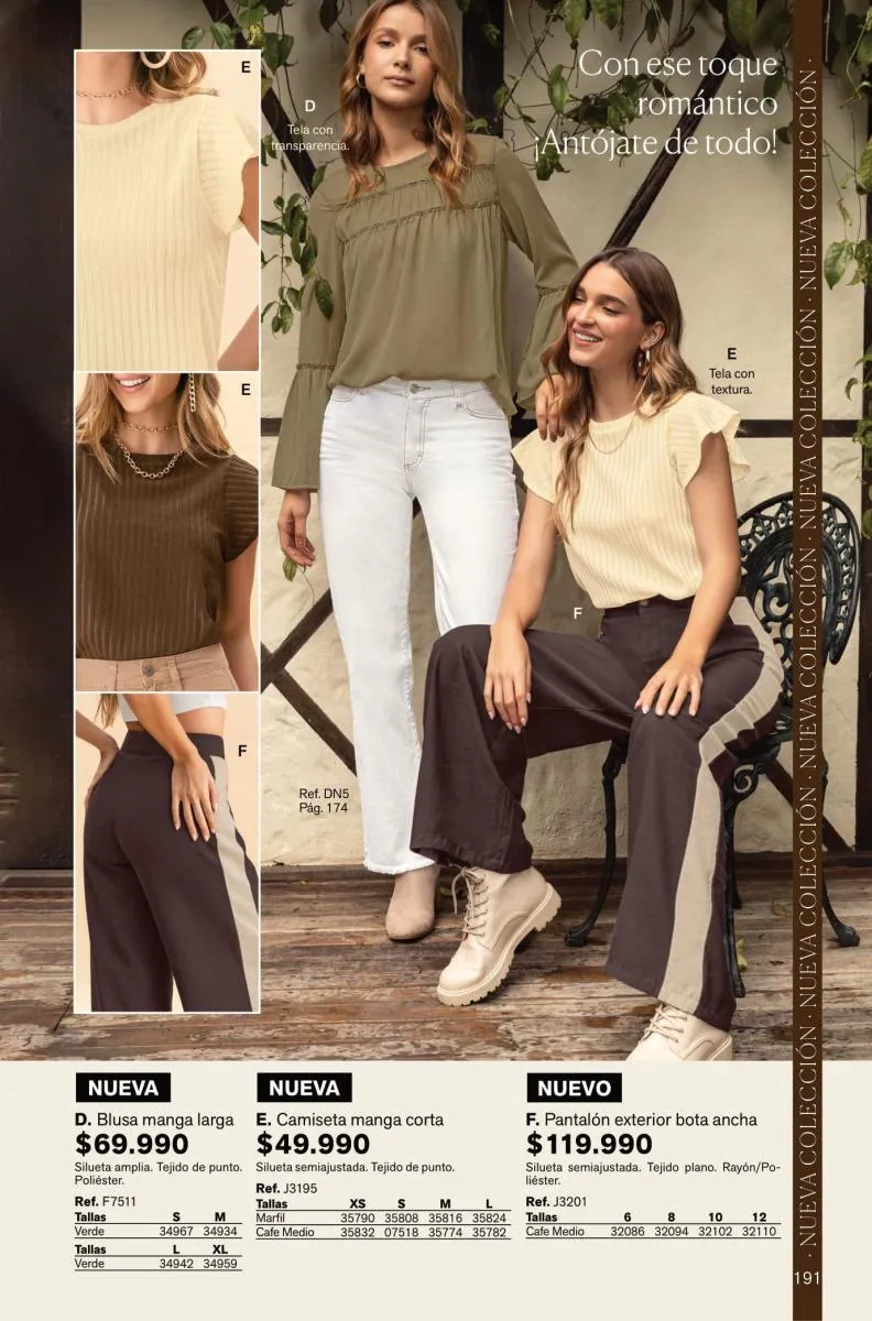 Esta colección trae a sus fieles clientes unos modelitos que no pasarán desapercibidos. En esta revista las blusas manga larga abiertas al frente, los coquetos crop top y los jeans skinny viene en tonalidades que te harán resaltar donde quiera que vayas.