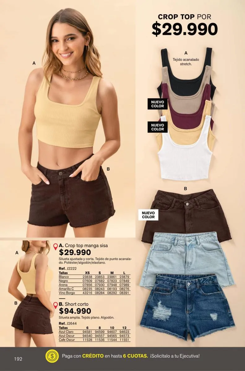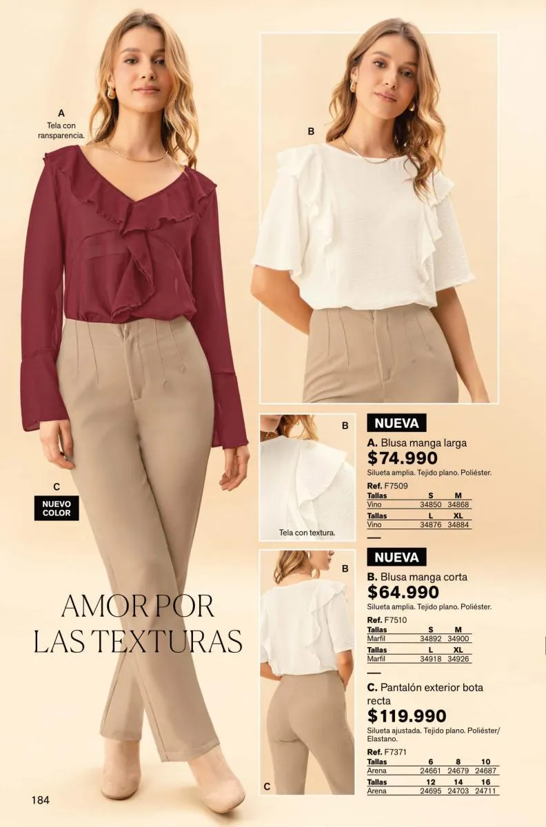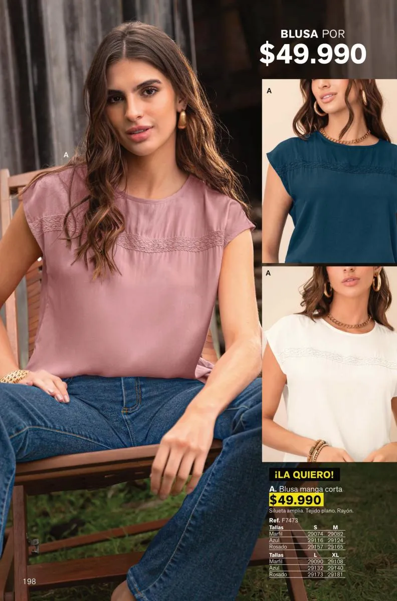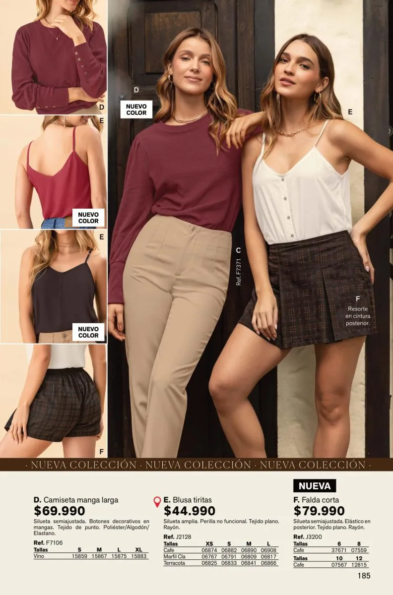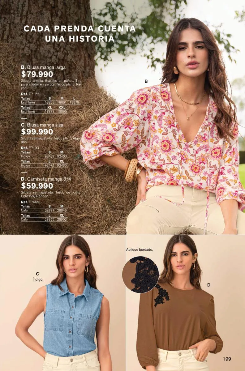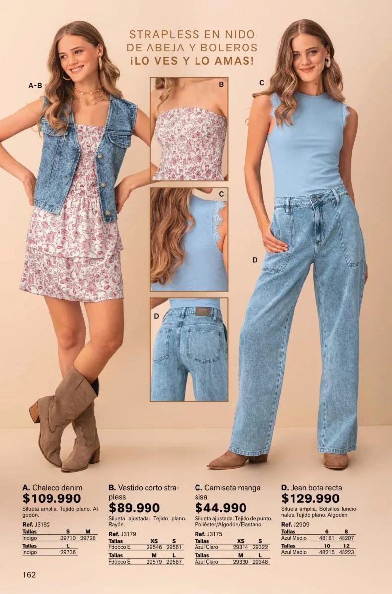 Esta colección trae a sus fieles clientes unos modelitos que no pasarán desapercibidos. En esta revista las blusas manga larga abiertas al frente, los coquetos crop top y los jeans skinny viene en tonalidades que te harán resaltar donde quiera que vayas.