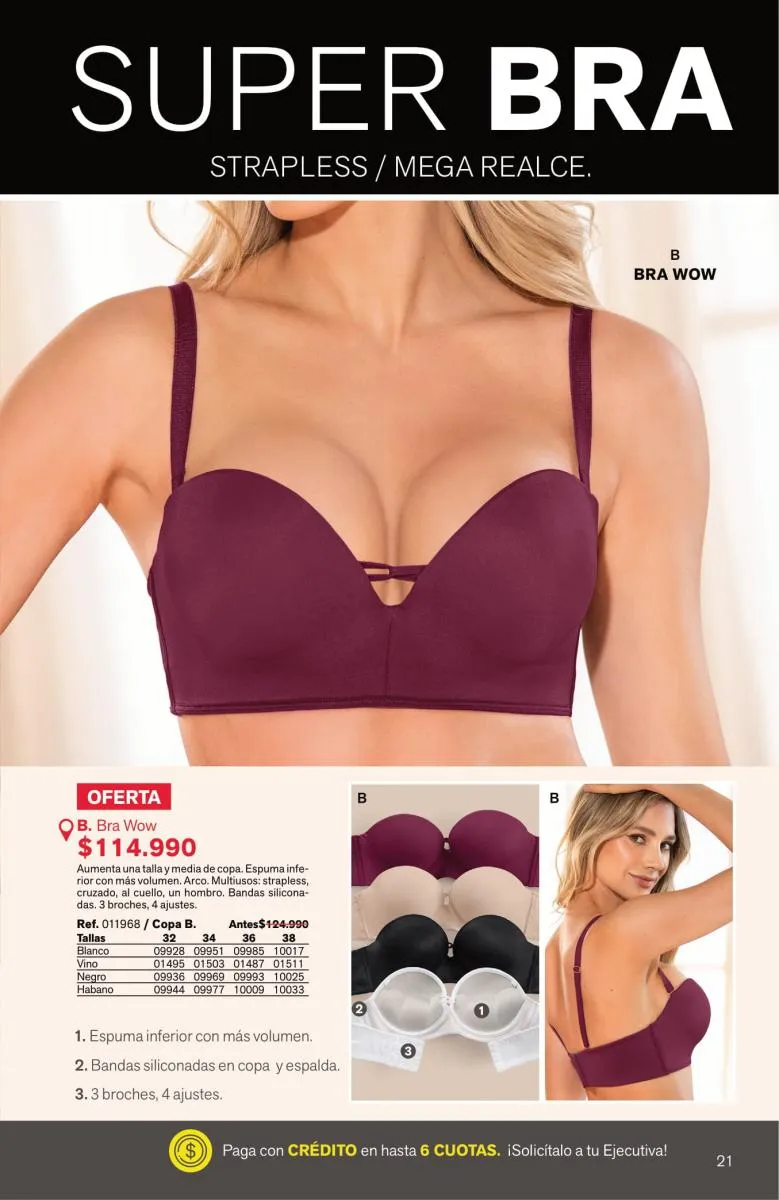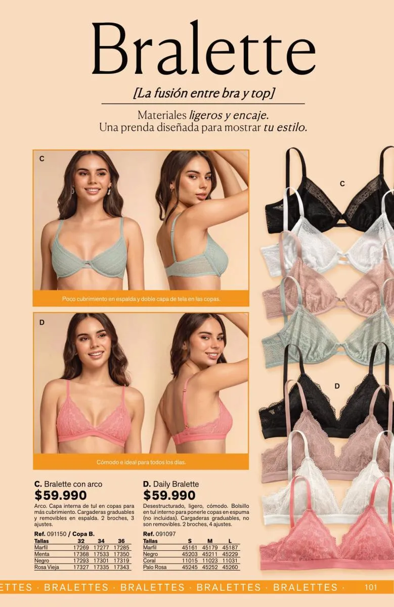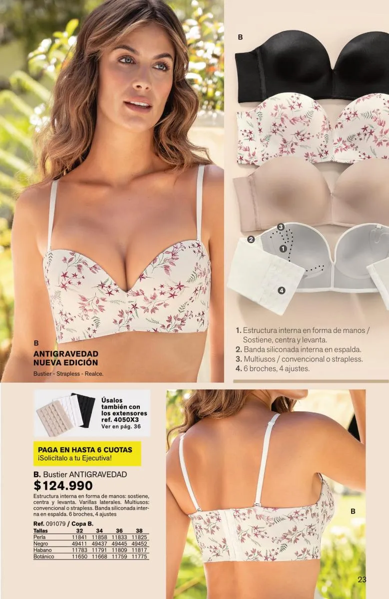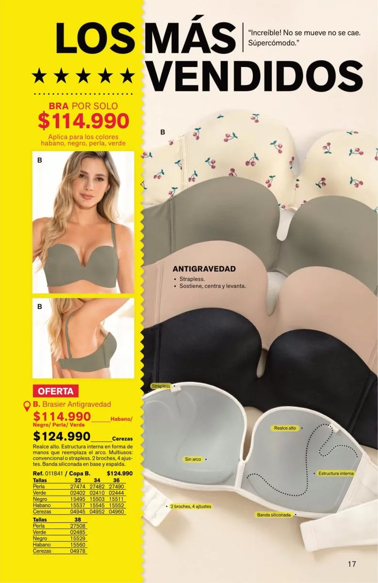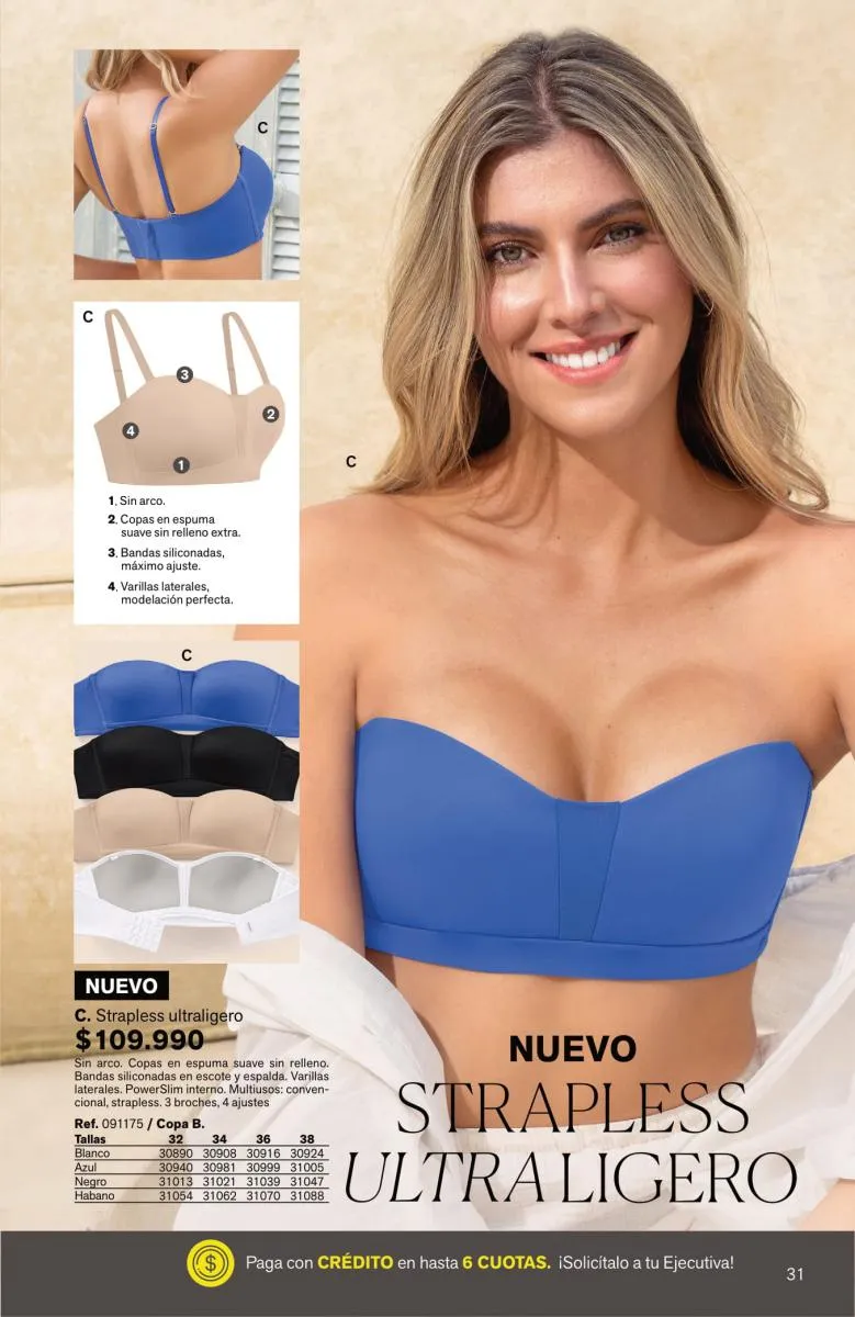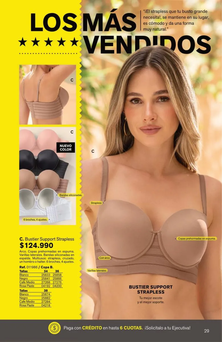 Tendrás prendas sofisticadas, con estupenda estructura que forman como manos, sosteniendo y levantando el busto de manera precisa. Además, sus bandas son siliconadas para mayor ajuste sin que se te marque.
