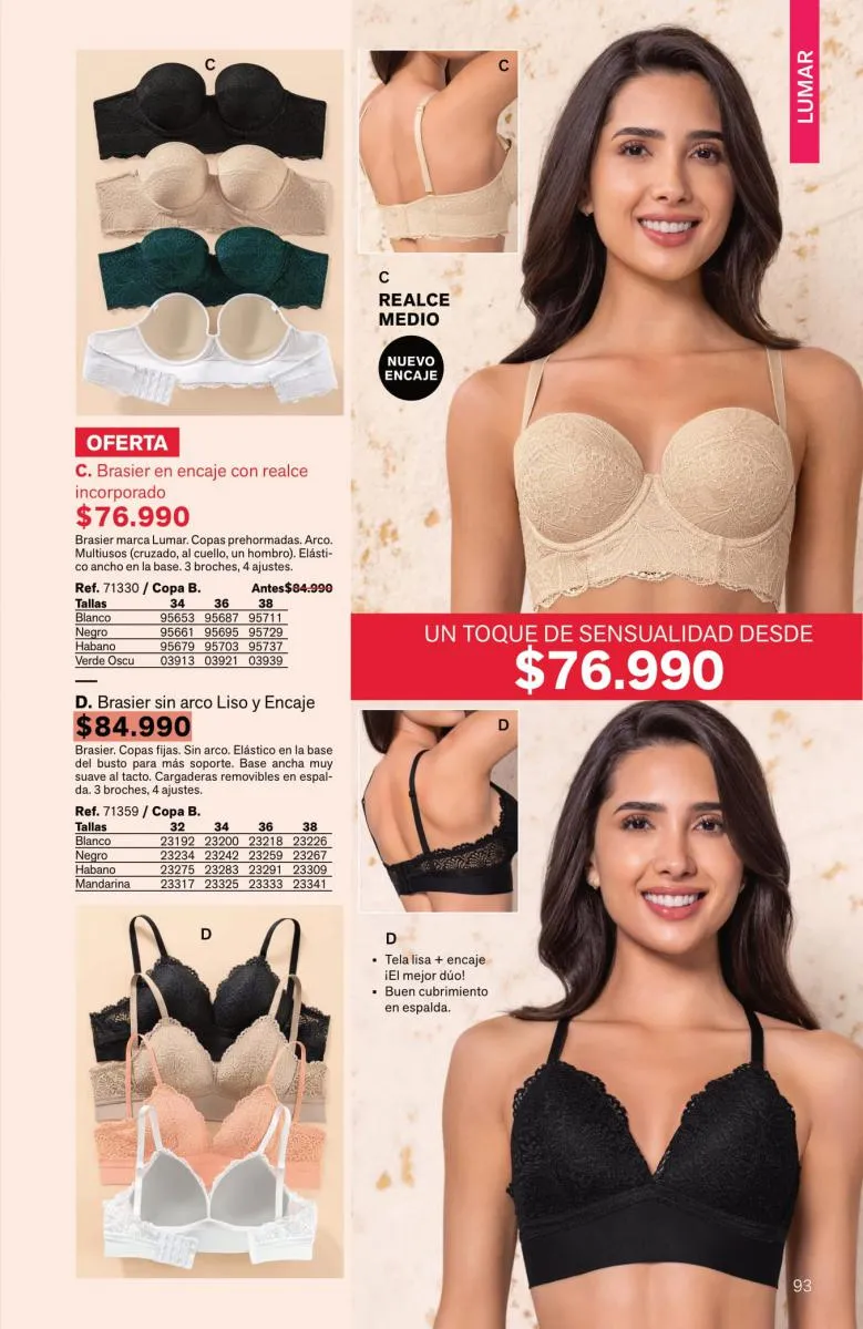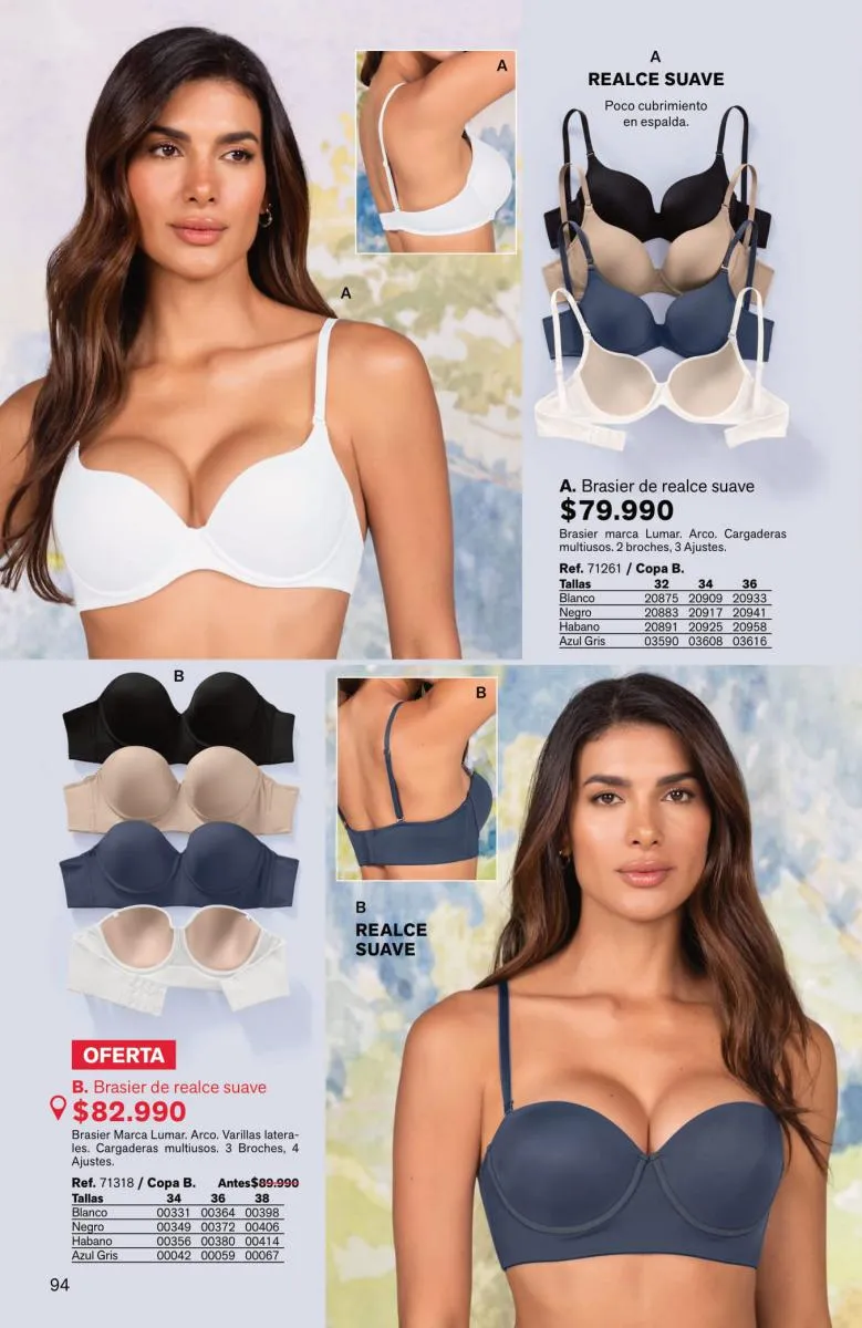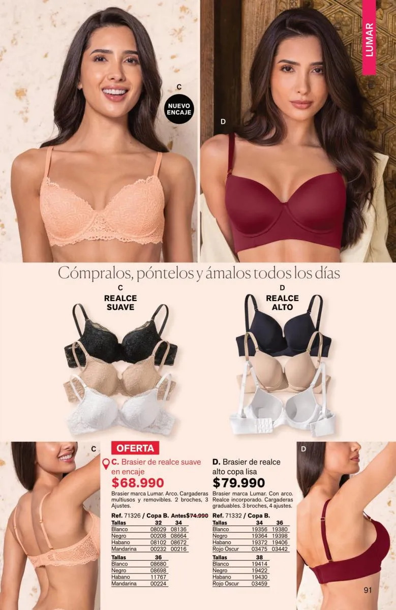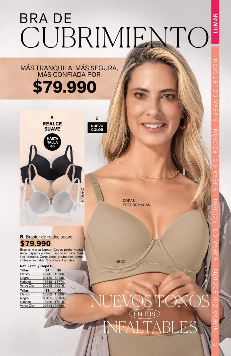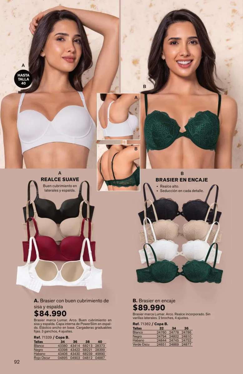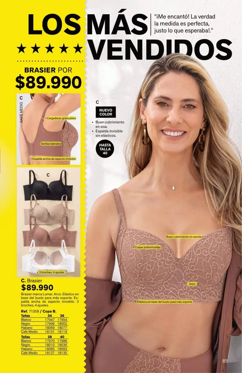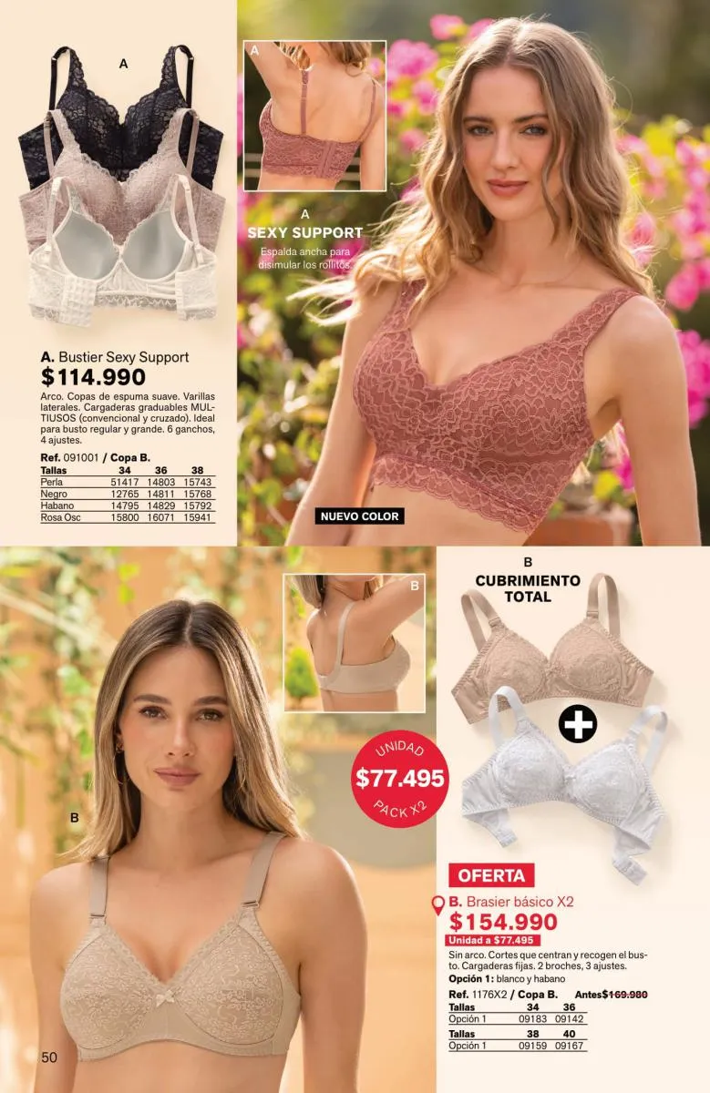 Tendrás prendas sofisticadas, con estupenda estructura que forman como manos, sosteniendo y levantando el busto de manera precisa. Además, sus bandas son siliconadas para mayor ajuste sin que se te marque.