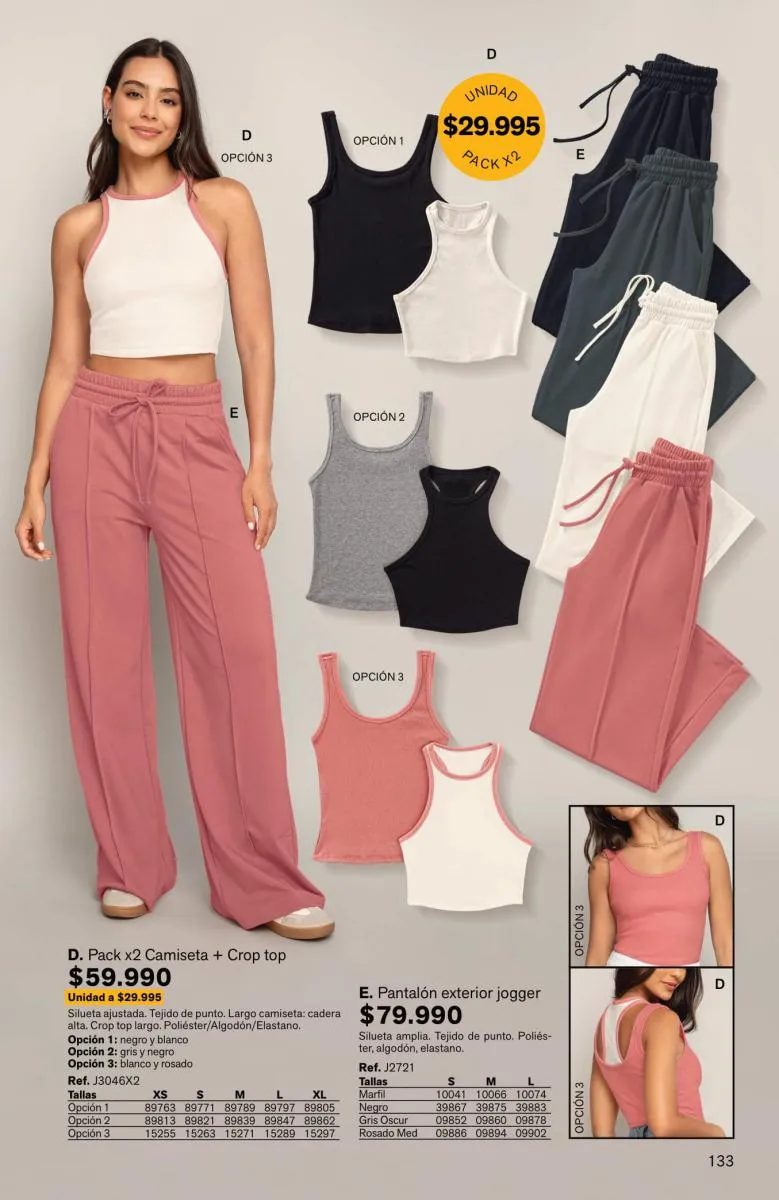 Y no te pierdas para la parte superior, los tops más variados, con diversos modelos, colores o estampados en paquetes de 2 piezas.