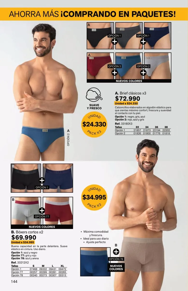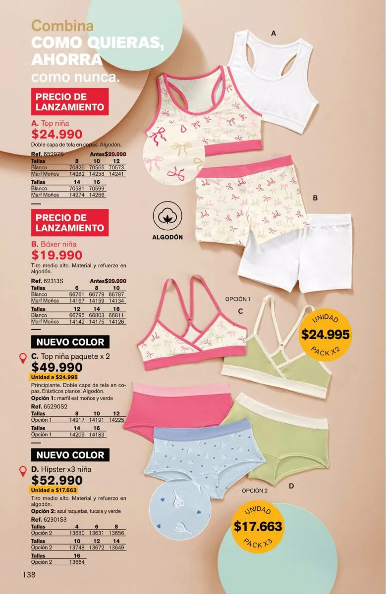 Para los niños, una gran cantidad de bóxeres, con los colores masculinos y en pack de 2 piezas. Para las niñas, pack de pantys hípster, con estampados variados y en paquete de 5 prendas.