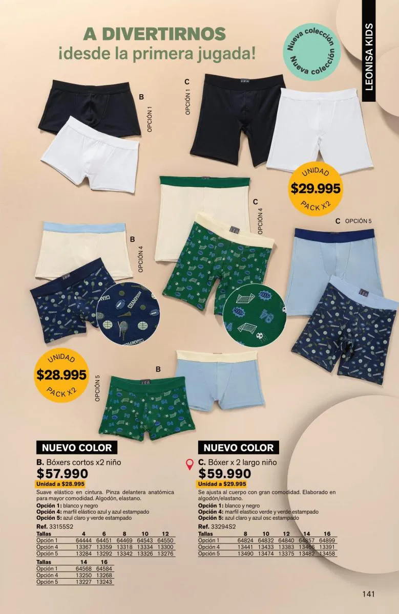 Para los más pequeños del hogar, Leonisa también cuenta con su sección de ropa interior, fresca, cómoda y con variedad de colores y diseños.