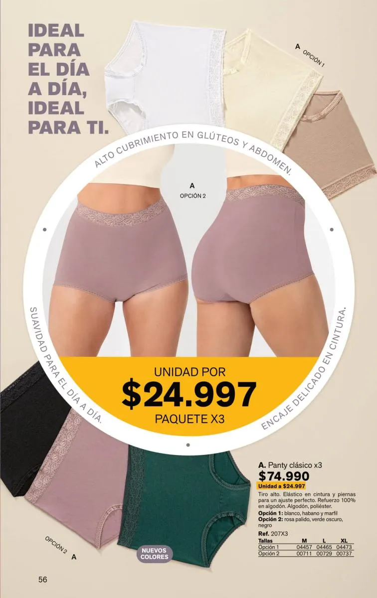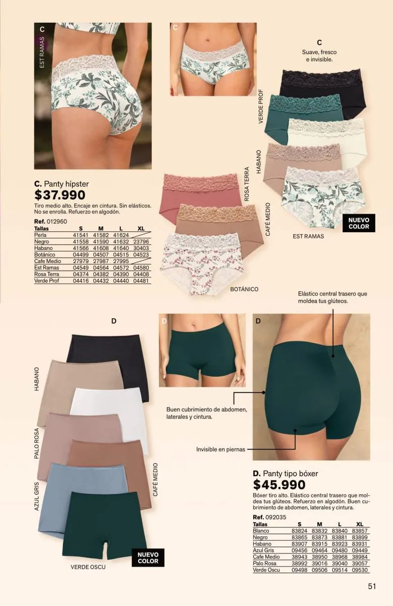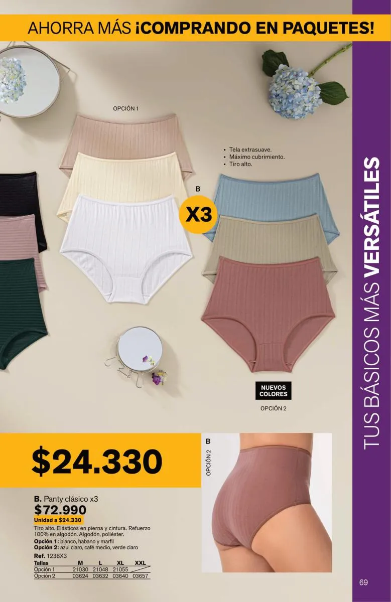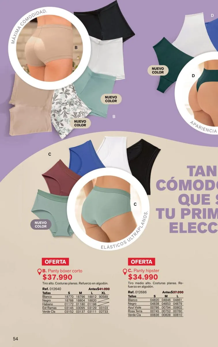 Sorprende la gran variedad de pantys, bóxeres femeninos, brasileras, hípster, culotte y más, en diversas tallas y con novedosos colores; las más bellas y sexys prendas están aquí.