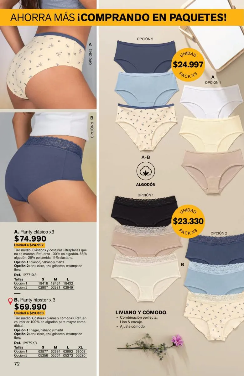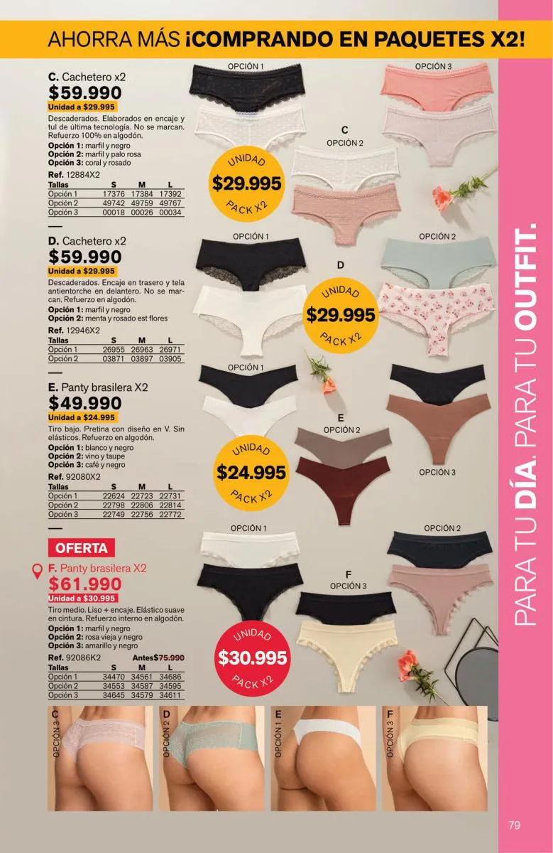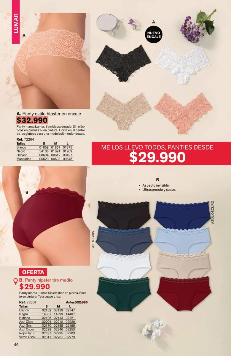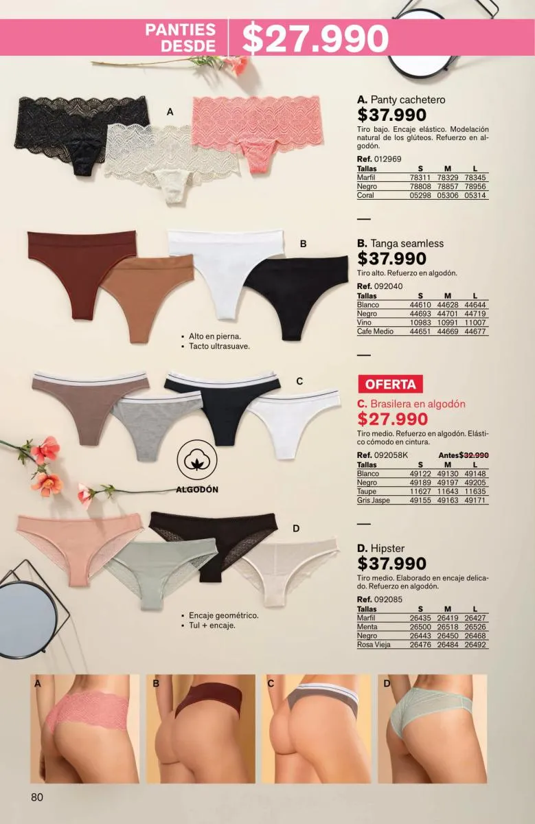 Sorprende la gran variedad de pantys, bóxeres femeninos, brasileras, hípster, culotte y más, en diversas tallas y con novedosos colores; las más bellas y sexys prendas están aquí.