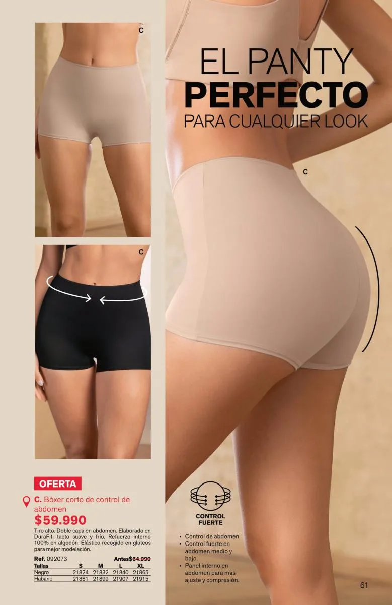 Tendrás a disposición shorts o pantys de control fuerte, para que todo quede en su sitio y con efecto de realce en la cola.