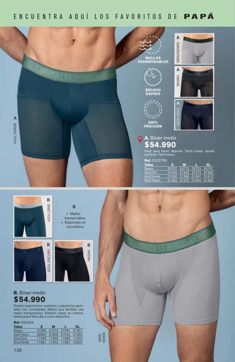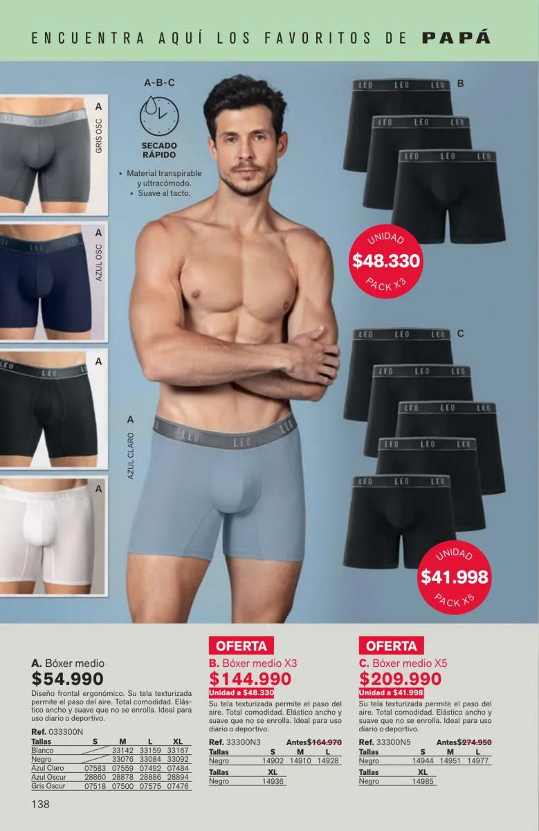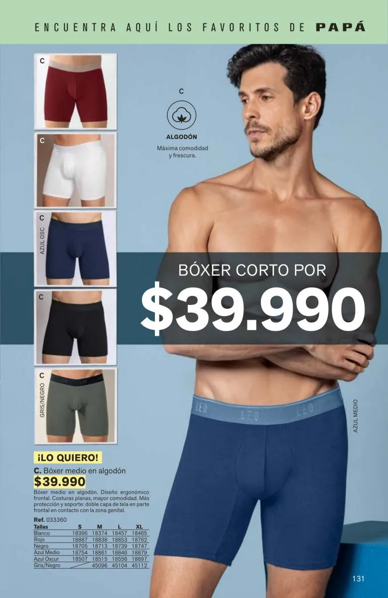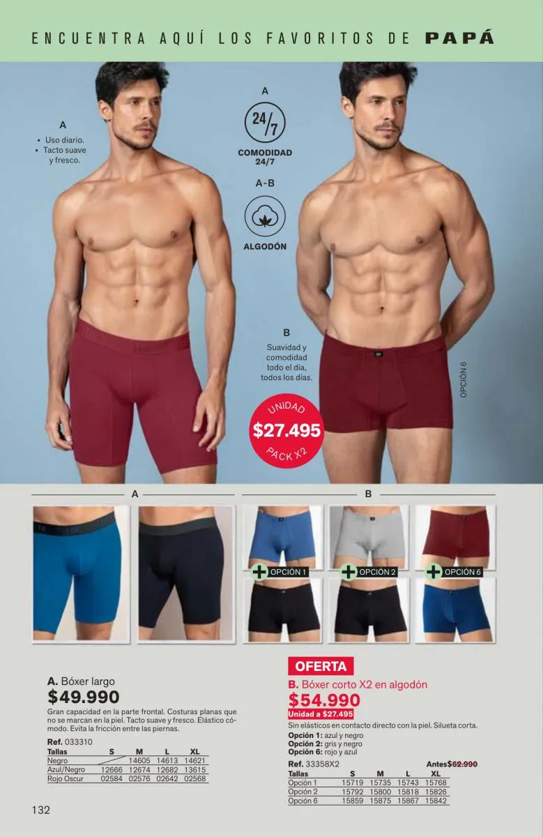 Regálale también prendas interiores frescas y confortables como los bóxeres, que vienen en tela de algodón y en paquetes de dos para mayor ahorro.