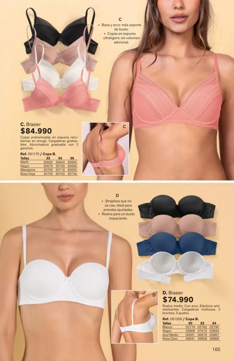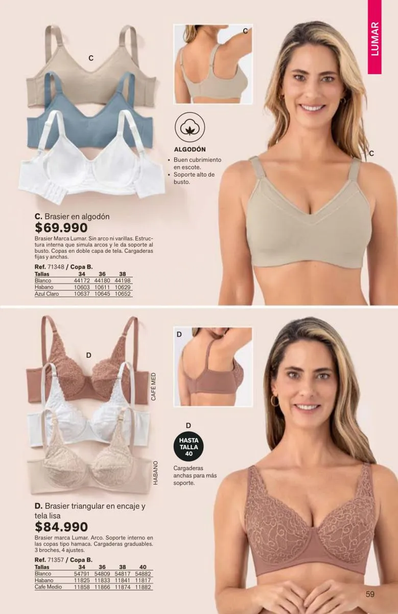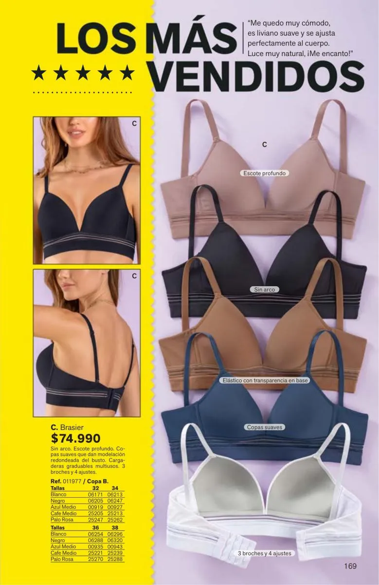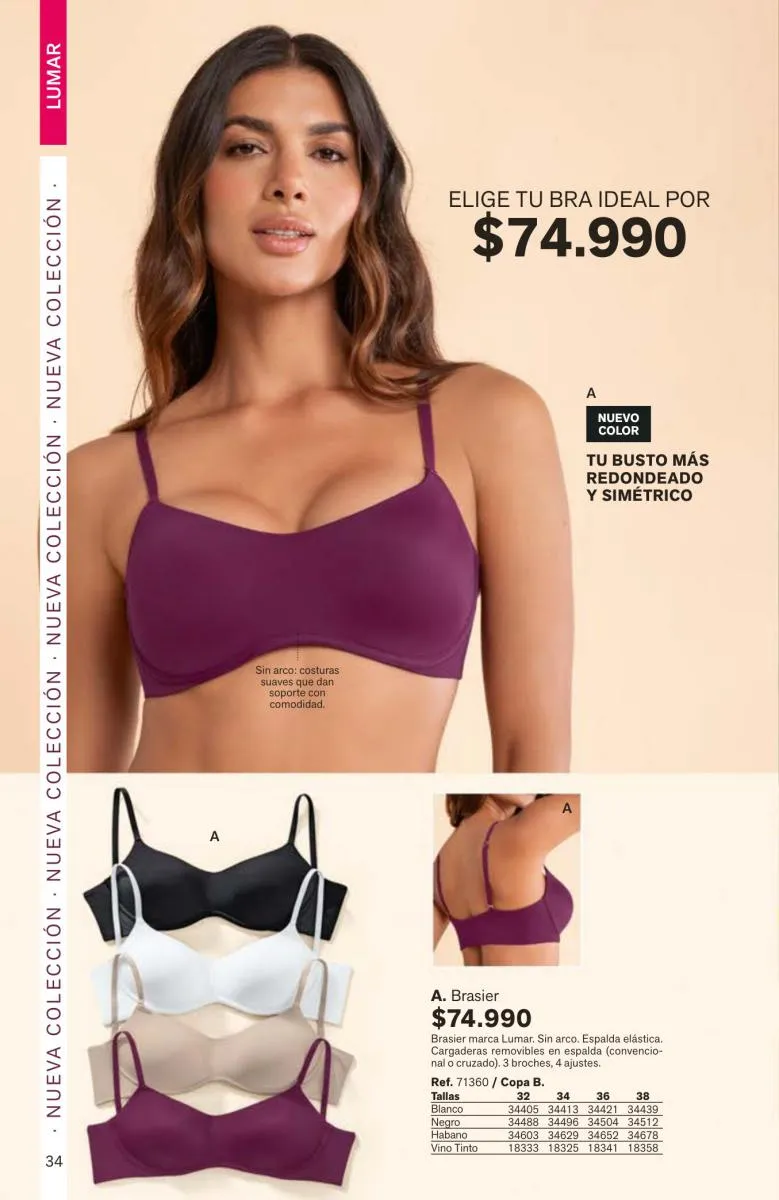 Paséate por la nueva diversidad de brasieres en tonos morados, azules, habano y vino.