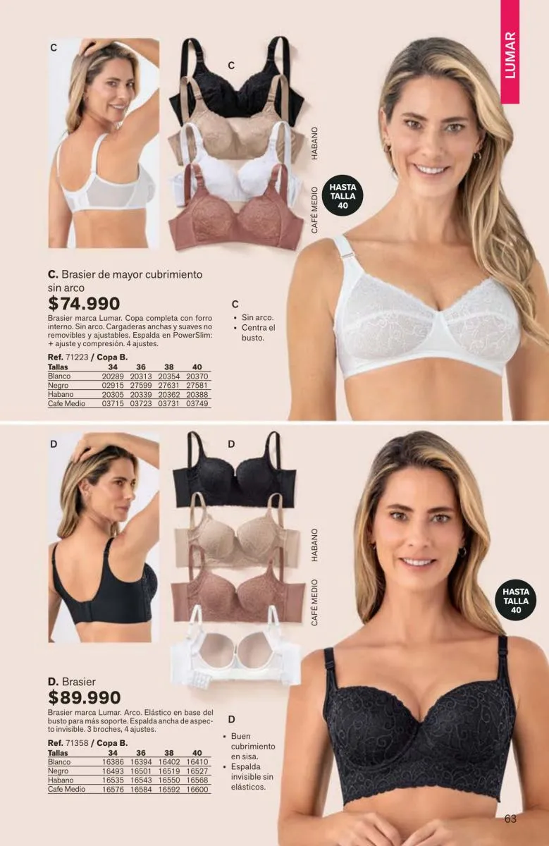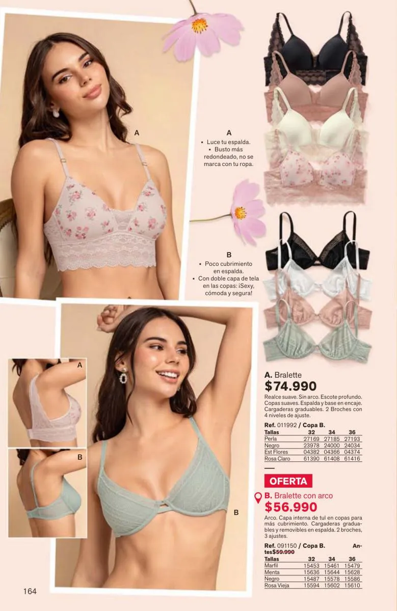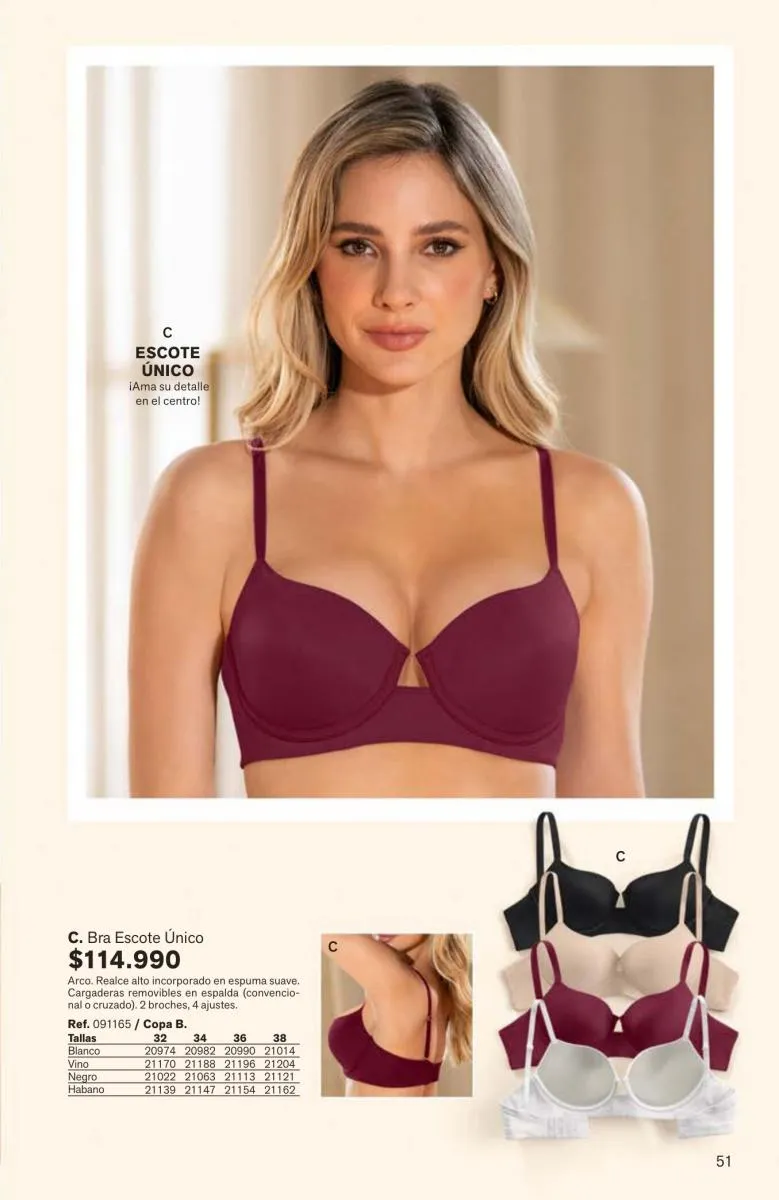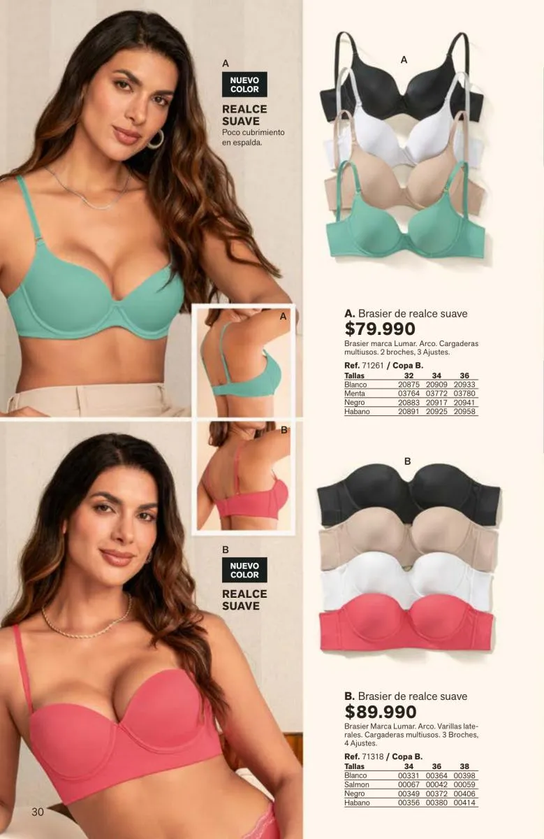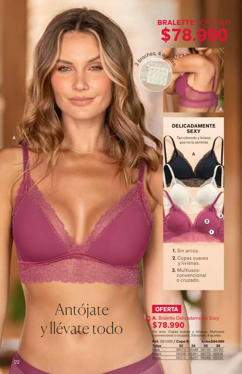 Paséate por la nueva diversidad de brasieres en tonos morados, azules, habano y vino.