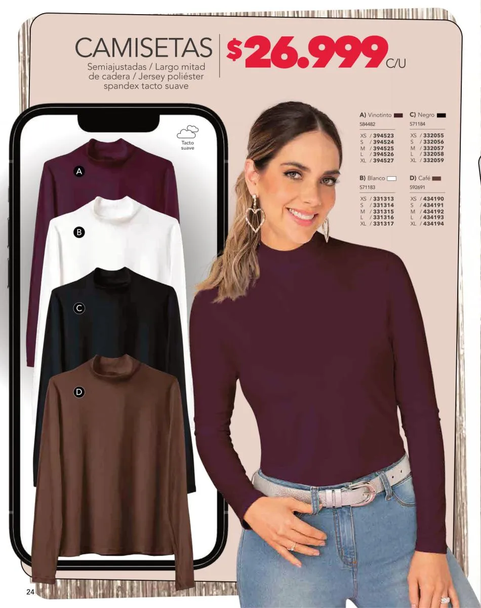 Entre las piezas de esta temporada verás muchos modelos de vestidos, blusas, jeans o pantalones en blanco y negro. Sin embargo, en catálogo Loguin campaña 17 2025 Colombia, las prendas de color también tienen su espacio.
