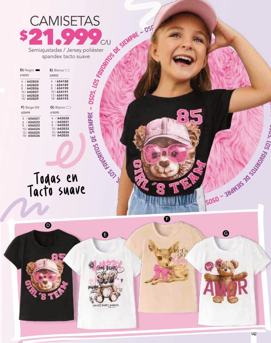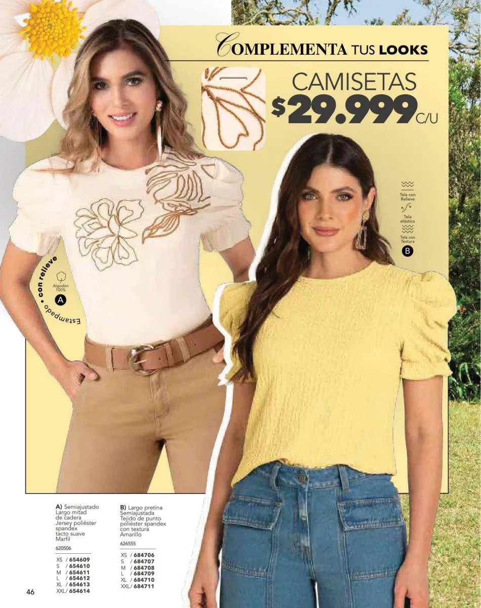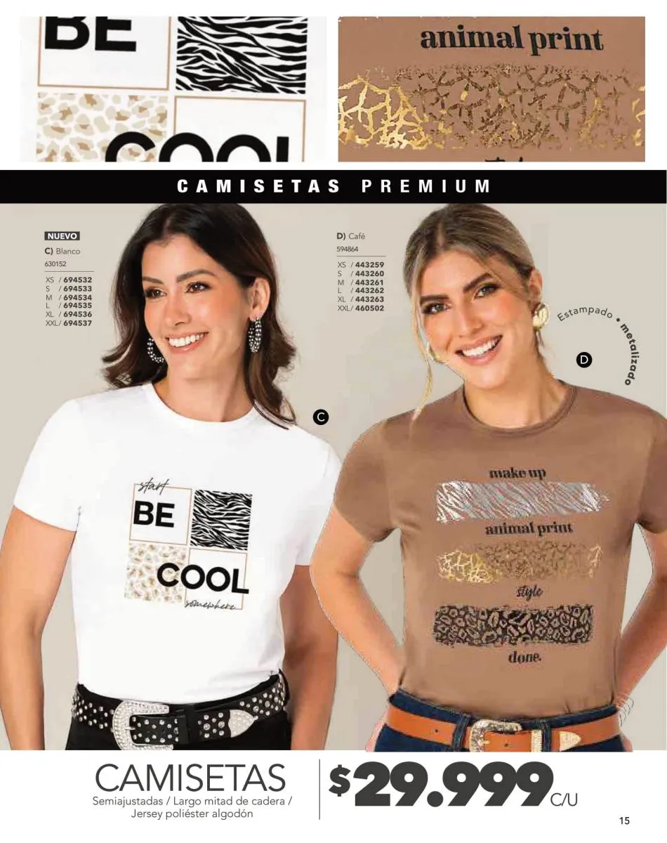 Esta campaña tiene lo mejor en diseños de piezas superiores. Las camisetas son prendas muy cómodas con patrones y colores que seguro te encantarán.