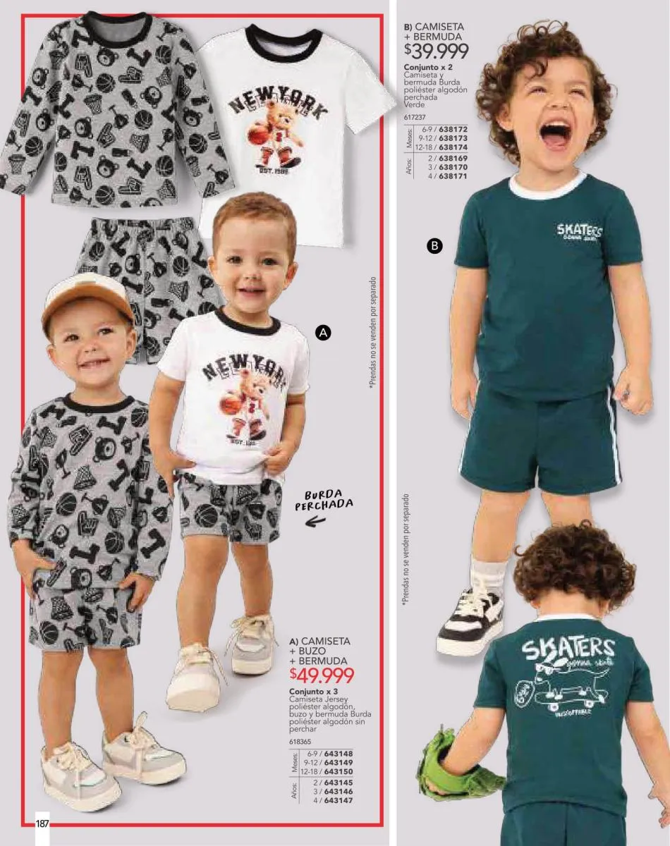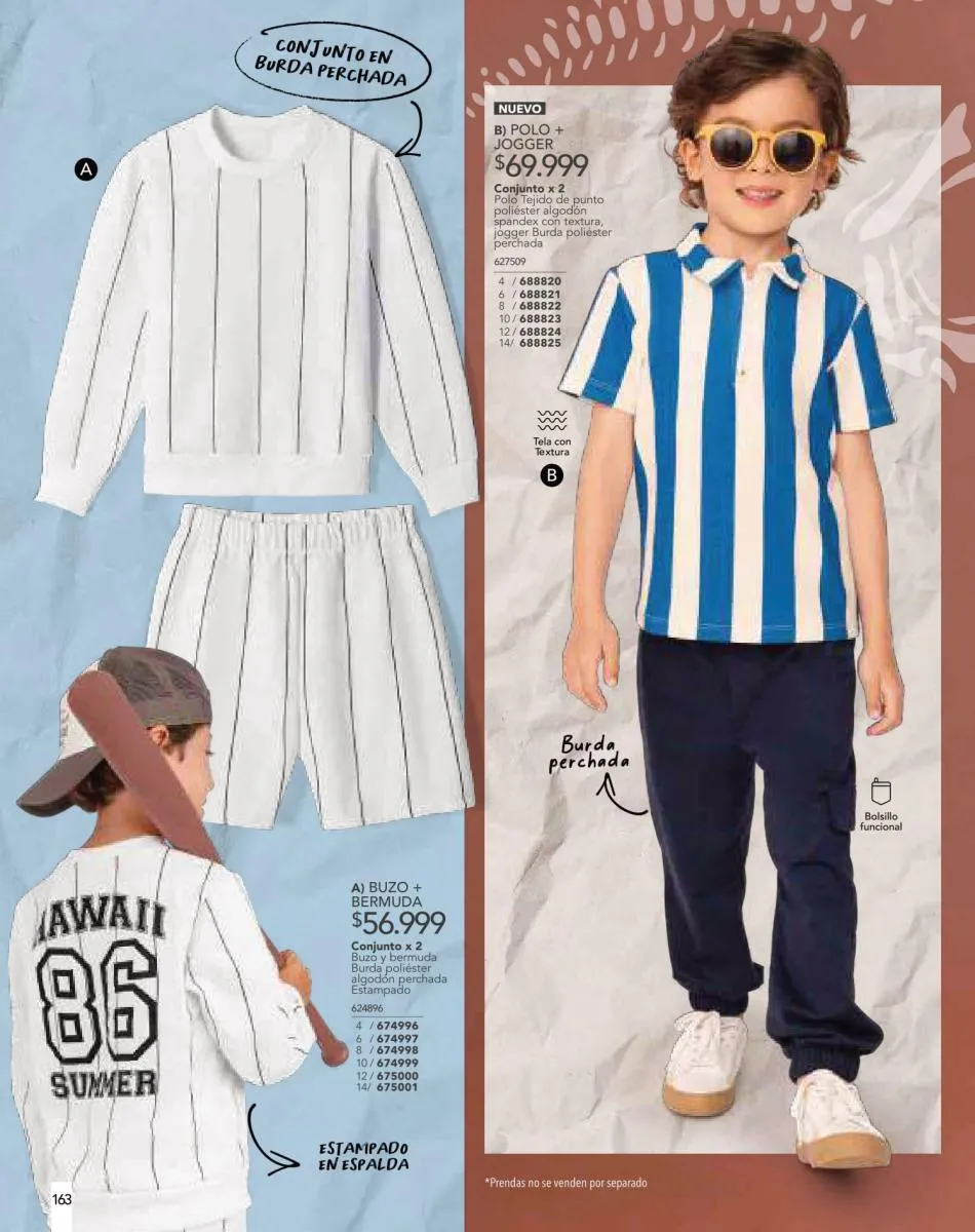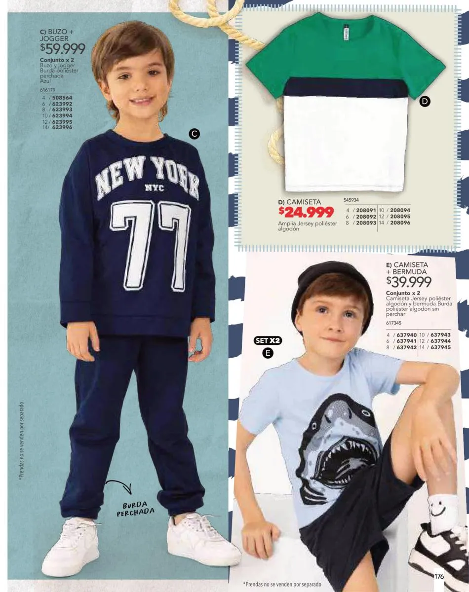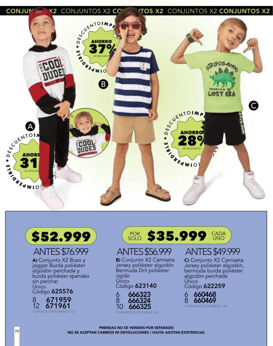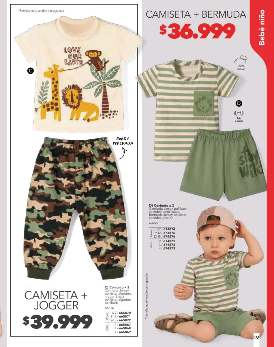 Nuestra recomendación son los conjuntos para chicos, de colores y modelos variados. El surtido de camisetas es absolutamente estupendo, con motivos que seguro les encantarán.