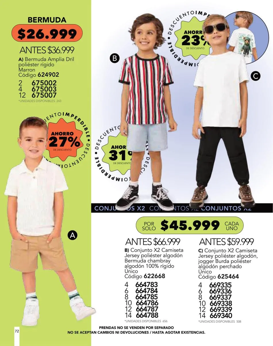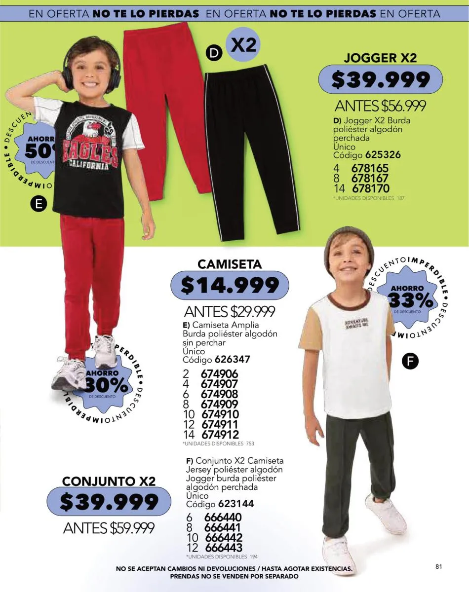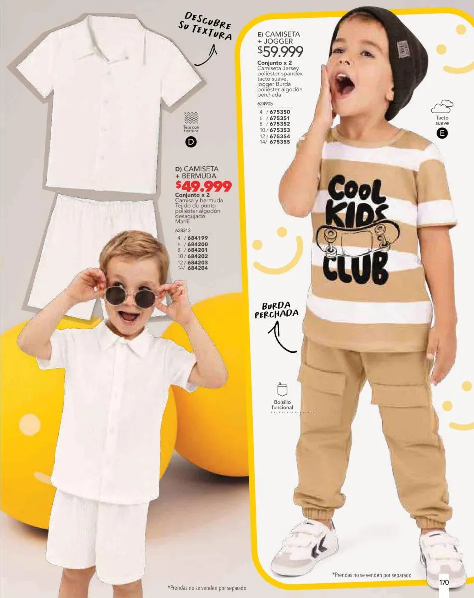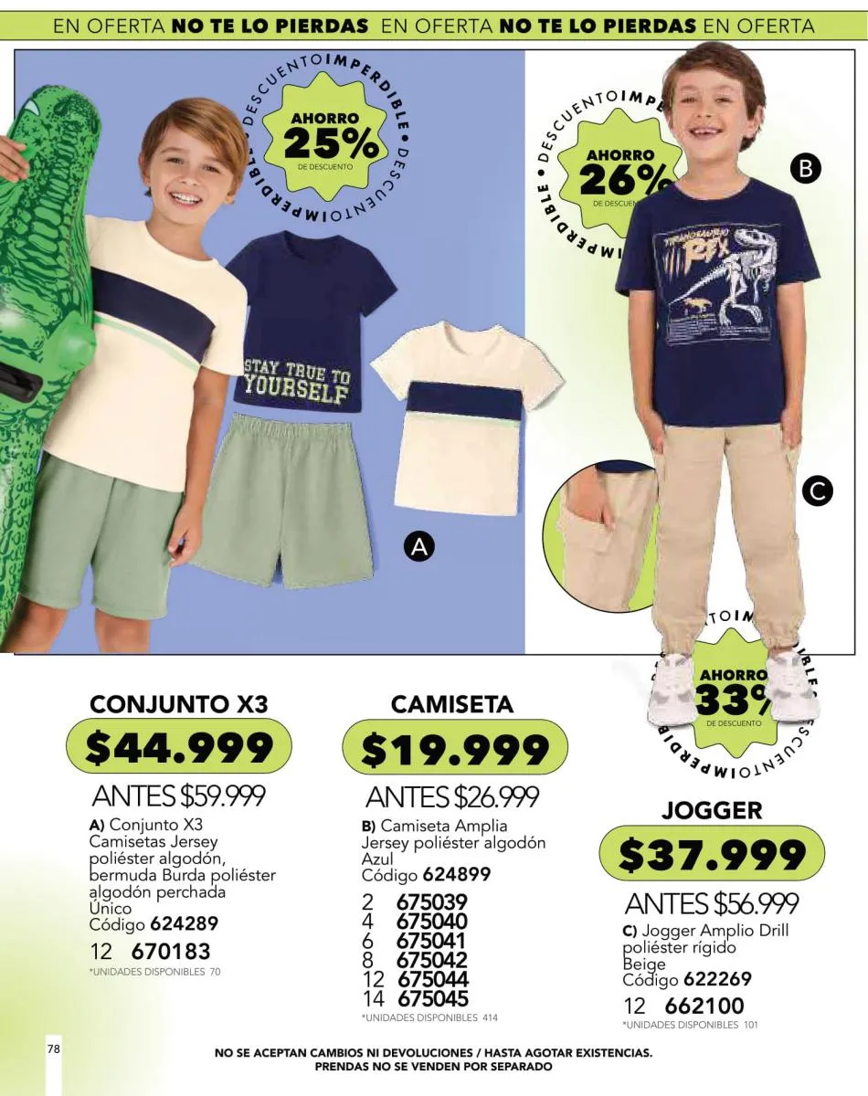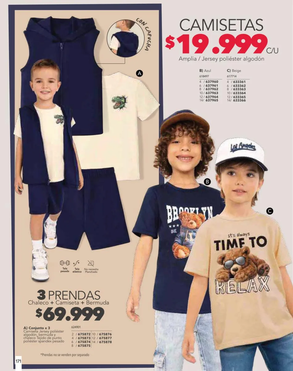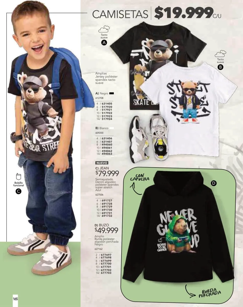 Nuestra recomendación son los conjuntos para chicos, de colores y modelos variados. El surtido de camisetas es absolutamente estupendo, con motivos que seguro les encantarán.