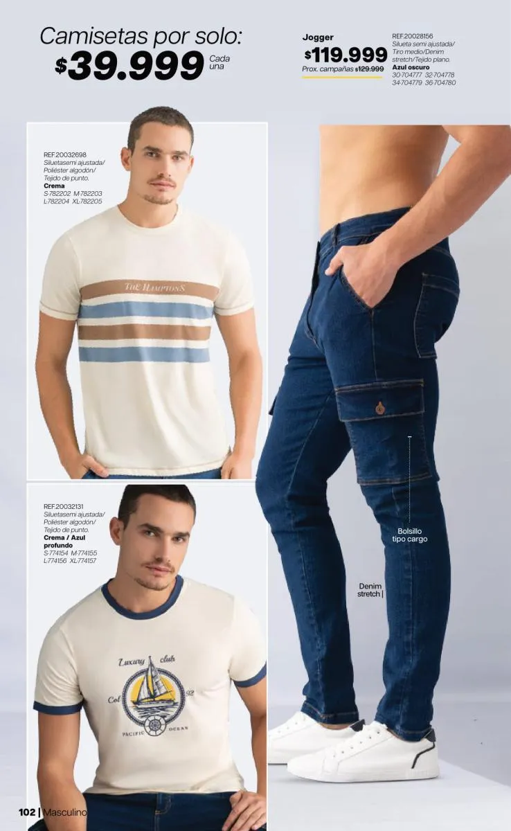 Secciones de ropa para caballeros con variedad de diseños en camisas, camisetas, camibuzos, jeans y pantalones con excelentes precios, así como ropa interior.