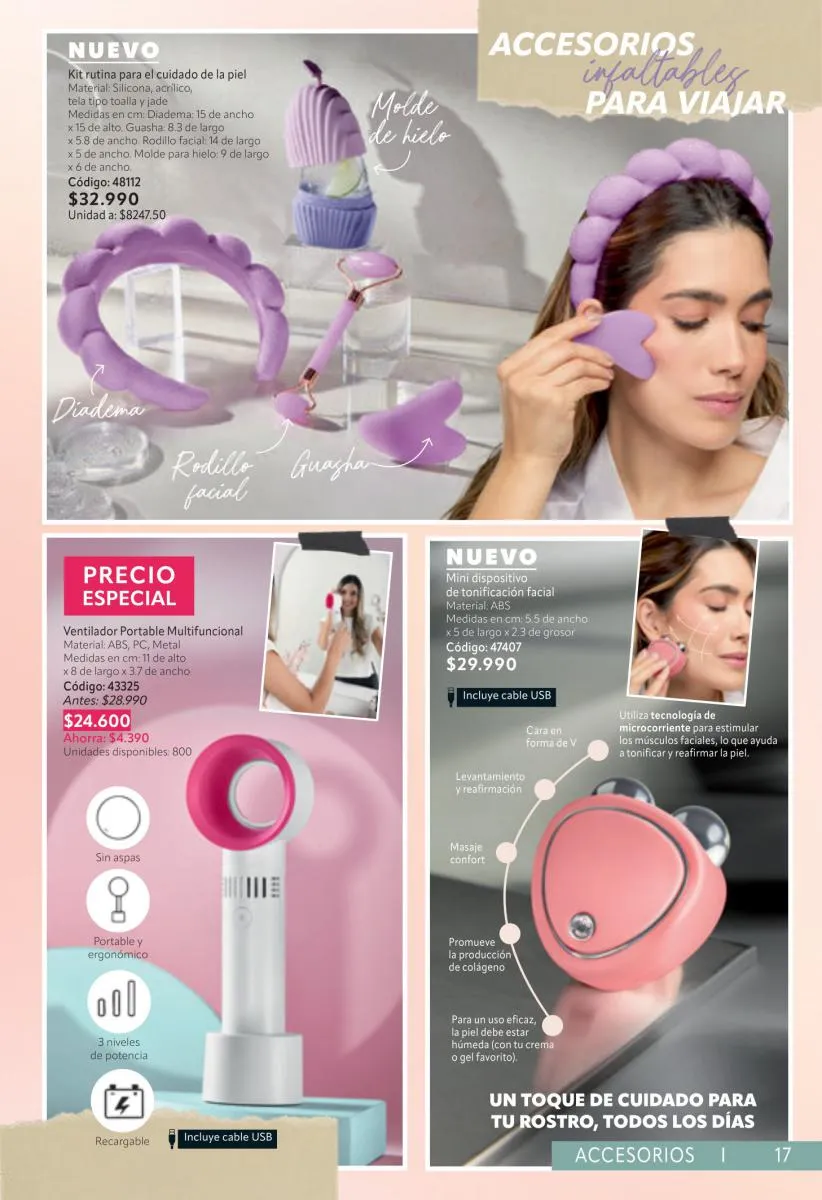 La propuesta presentada en prestigio campaña 5 2026 nueva destaca por integrar productos prácticos que pueden utilizarse en diferentes momentos de la rutina diaria. Entre ellos se observan herramientas para el cuidado del rostro, accesorios que ayudan a relajar la piel y elementos diseñados para mejorar la experiencia de belleza personal. También se incorporan accesorios para el cabello y artículos que permiten crear estilos sencillos y elegantes, reforzando la idea de una colección versátil y adaptable a distintas preferencias.