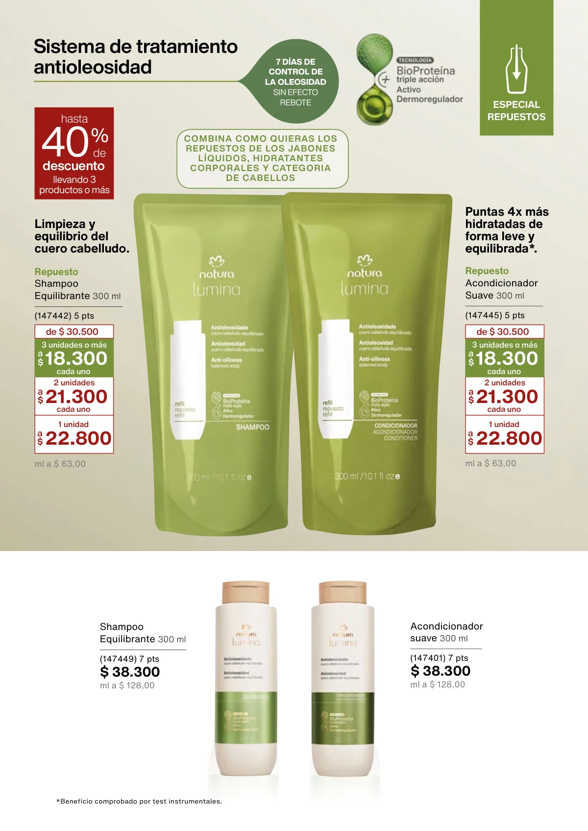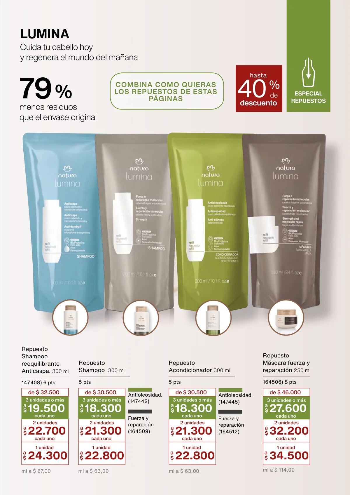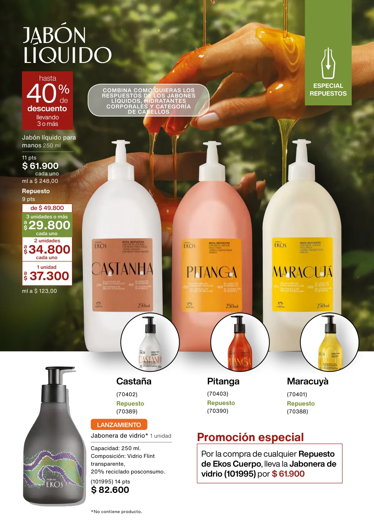 Todos disponibles en presentación de 150ml, con producto de repuesto opcional y 30% de descuento.
