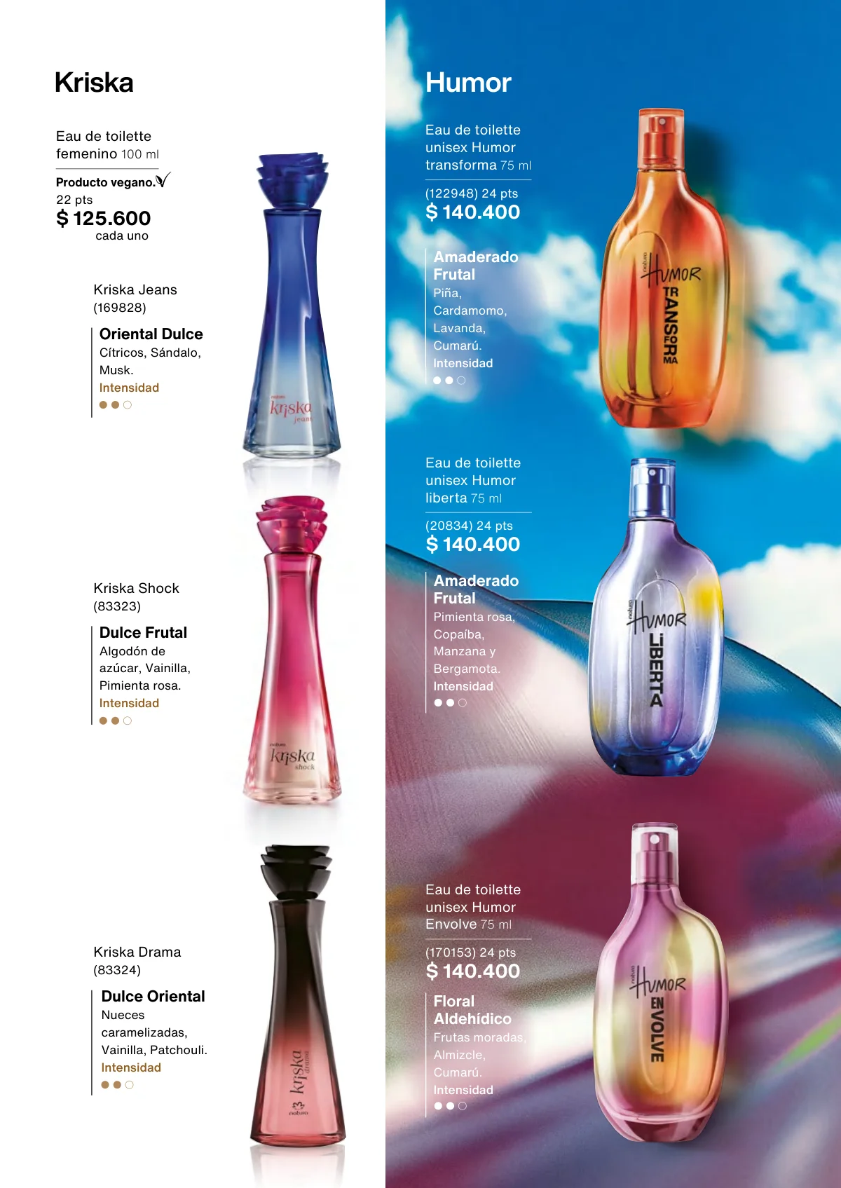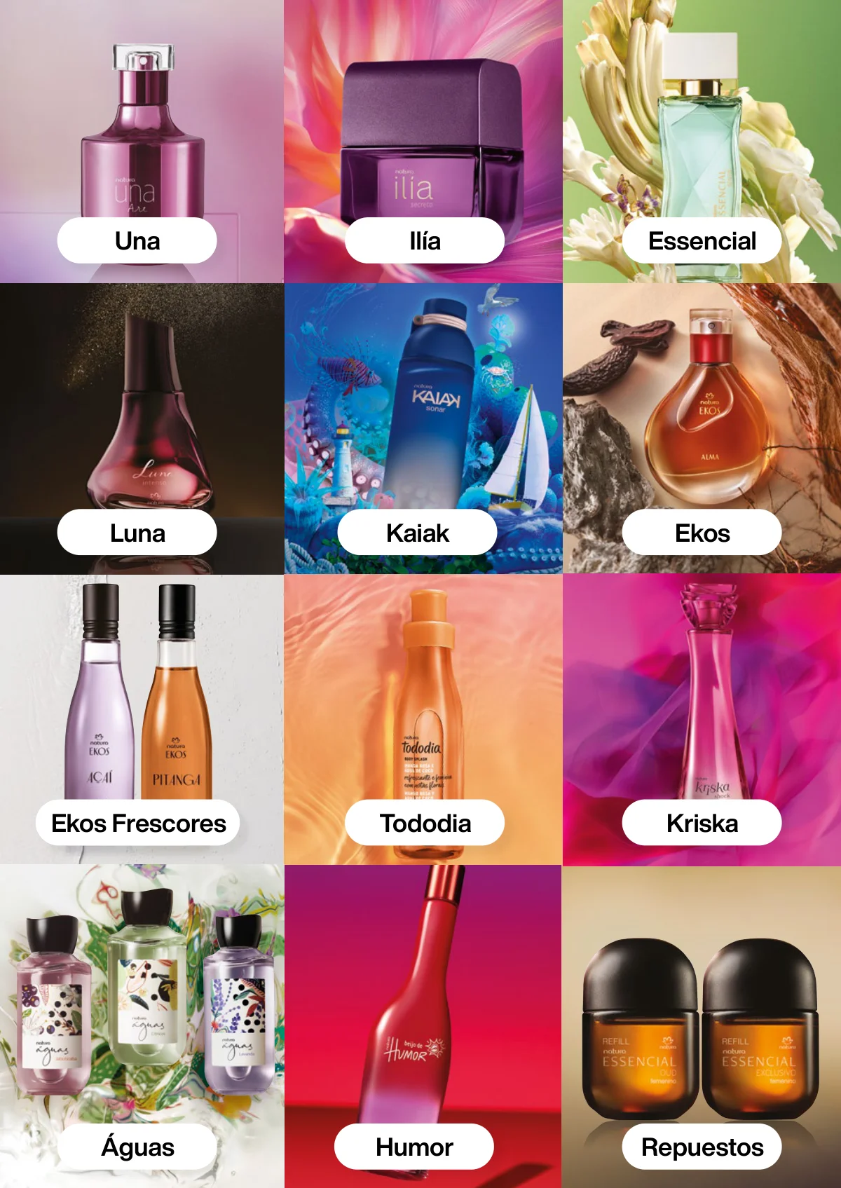 Descubre junto al catálogo Natura Ciclo campaña 1 2026 Colombia, toda la frescura de los Eau de perfum y Eau de toilette para damas y caballeros, elaborados con distinguidos toques dulces, cítricos, florales o amaderados. Productos para el cuidado diario y nocturno. Todos los colores vibrantes y en tendencia plasmados en cosméticos para toda ocasión.