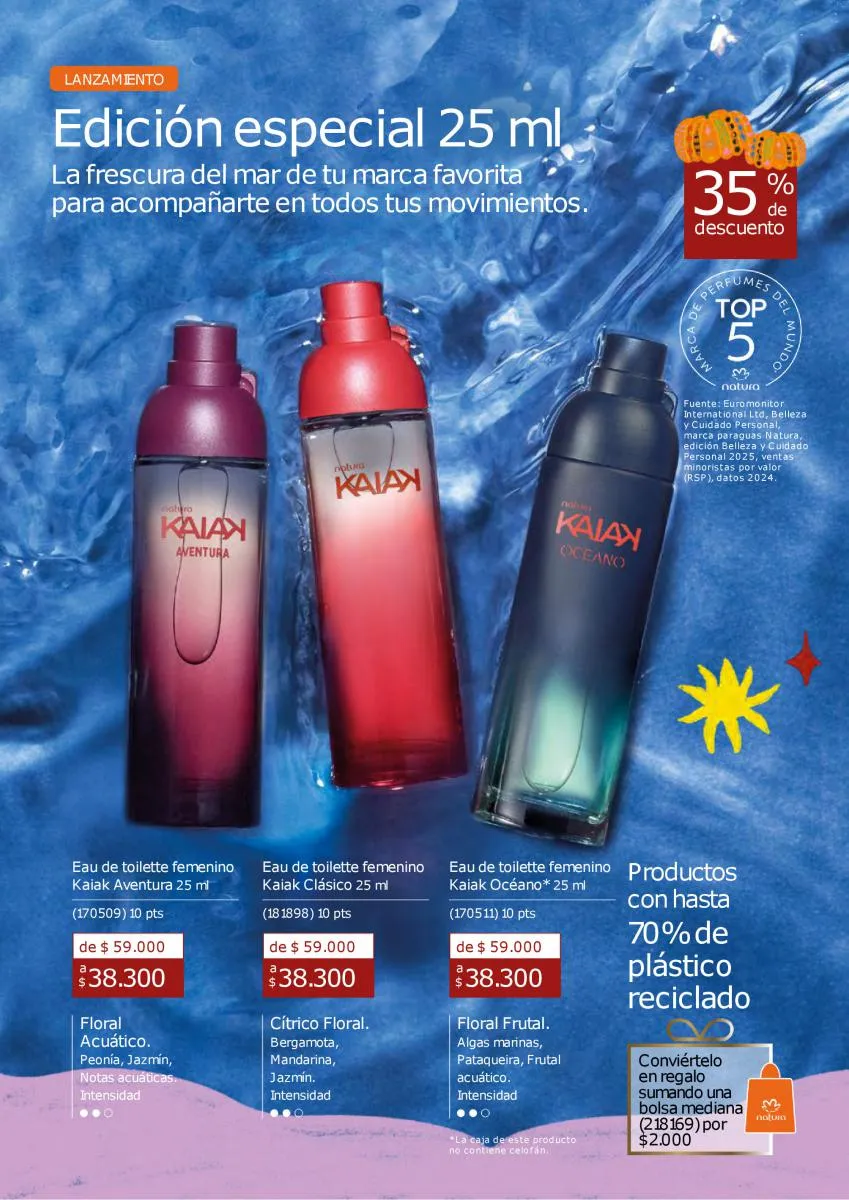 La novedosa catálogo Natura Ciclo campaña 14 2025 Colombia está inspirada en la naturaleza, en especial de los perfumes para ellas o ellos. Uno de los ingredientes innovadores es la Pataqueira, una flor amazónica con esencia vibrante y alegre.