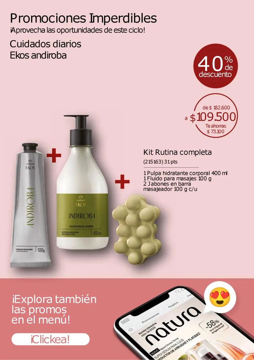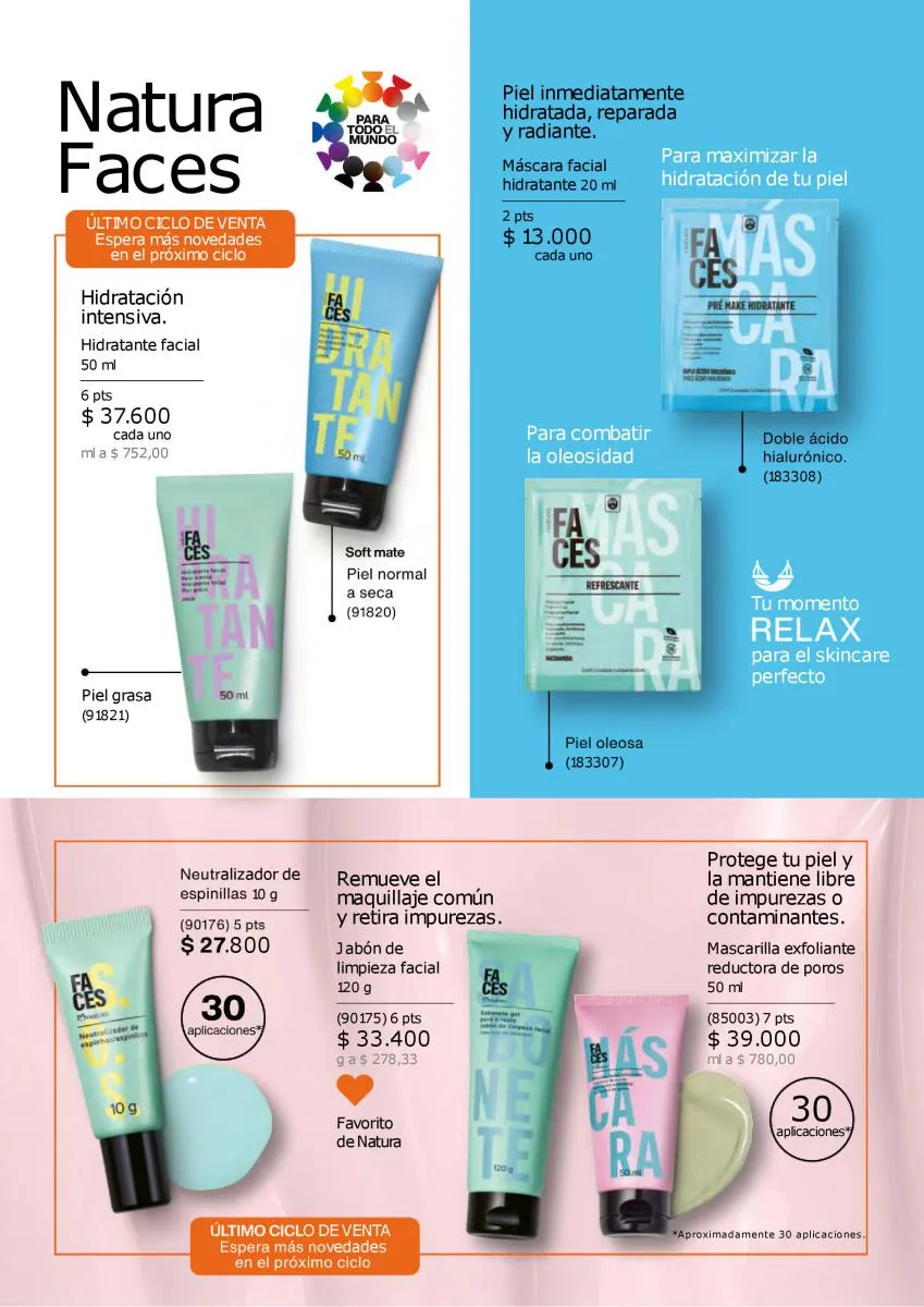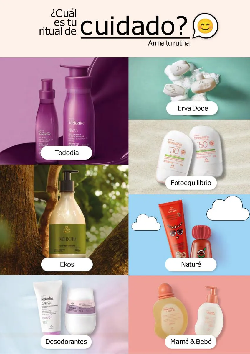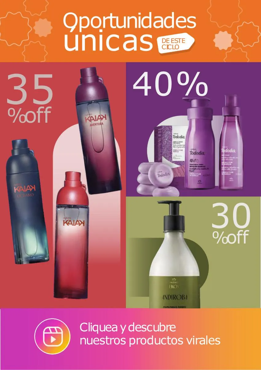 El eslogan de esta Natura Ciclo campaña 14 2025 es ¿Qué puede hacer una marca de belleza por la belleza? Pues traerte lo mejor en productos y fórmulas modernas para cuidar piel y rostro y detener los efectos de la edad. En esta temporada tendrás descuentos con las más estupendas líneas anti oleosidad, anti manchas, de limpieza y tonificación. Natura promueve un rostro sin impurezas y sin grasa.