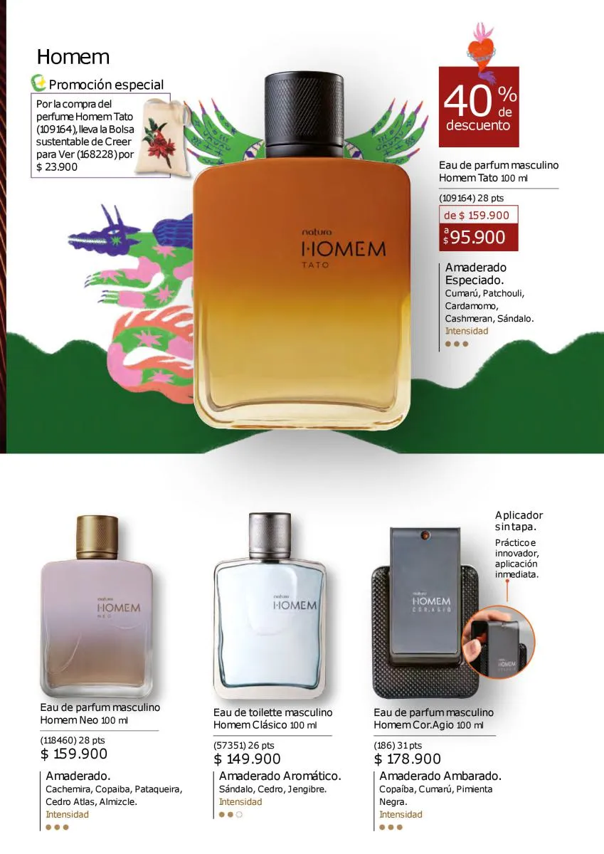 Los perfumes de Natura tienen excelentes aromas para ambos sexos. La inspiración para esta catálogo Natura Ciclo campaña 14 2025 es la selva brasileña, gracias a la más grande biodiversidad del planeta y que quiere transmitirla a ti con aromas intensos.