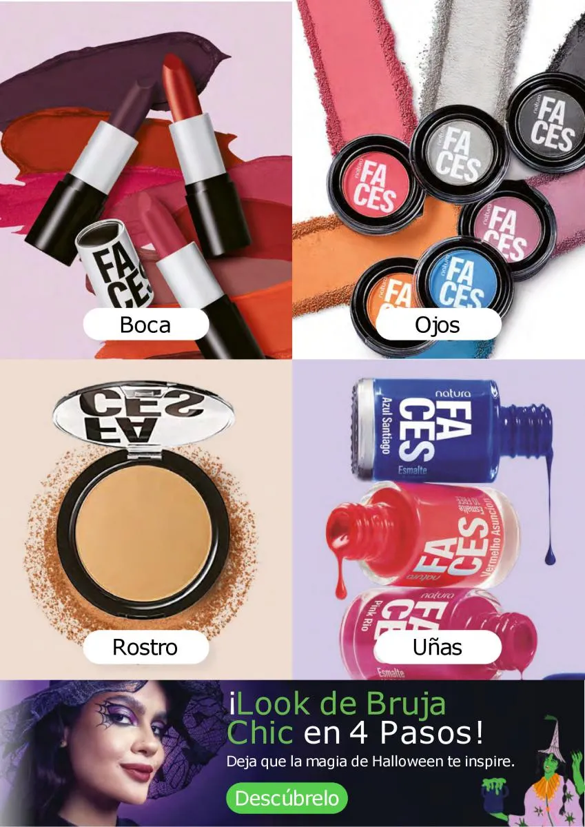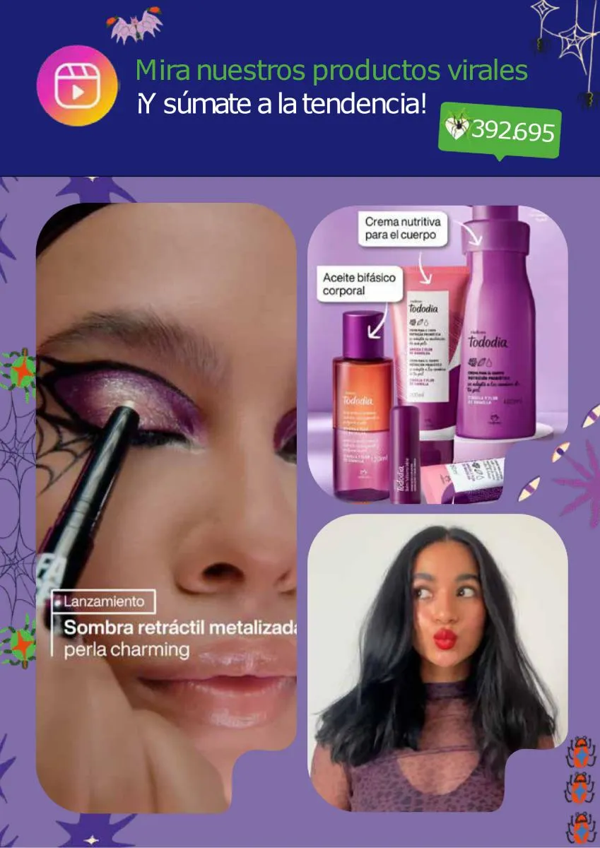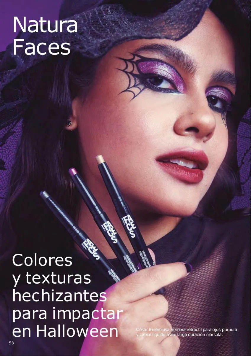 Los maquillajes de esta catálogo Natura Ciclo campaña 14 2025 Colombia tendrán la combinación perfecta de productos para lograr un look tenebroso. Ya se acerca el Halloween y es una ocasión para sacar el mejor look en tu rostro, puede ser alusivo a la festividad, o con el toque más sensual con variedad de productos y los más intensos colores de mayor duración.
