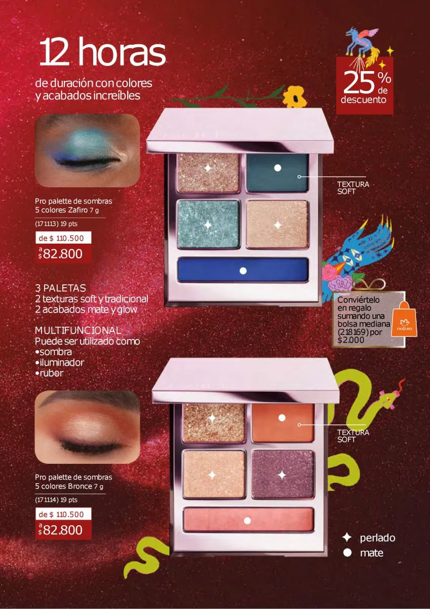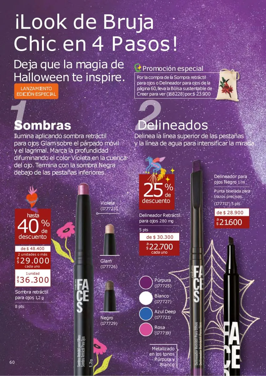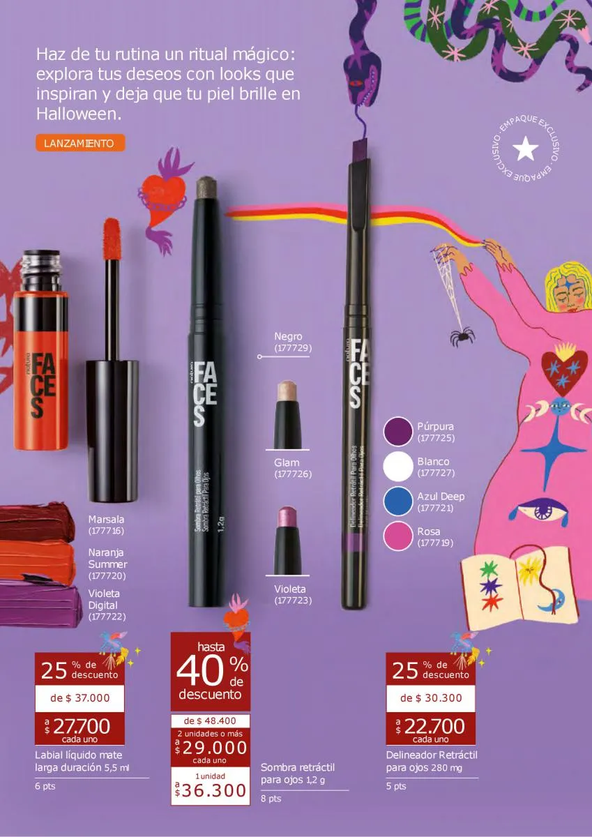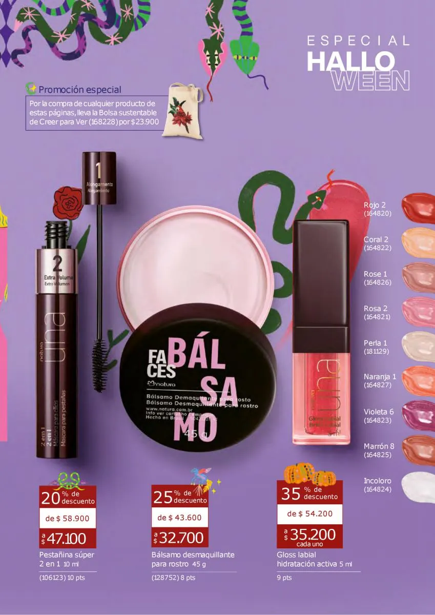 Los maquillajes de esta catálogo Natura Ciclo campaña 14 2025 Colombia tendrán la combinación perfecta de productos para lograr un look tenebroso. Ya se acerca el Halloween y es una ocasión para sacar el mejor look en tu rostro, puede ser alusivo a la festividad, o con el toque más sensual con variedad de productos y los más intensos colores de mayor duración.