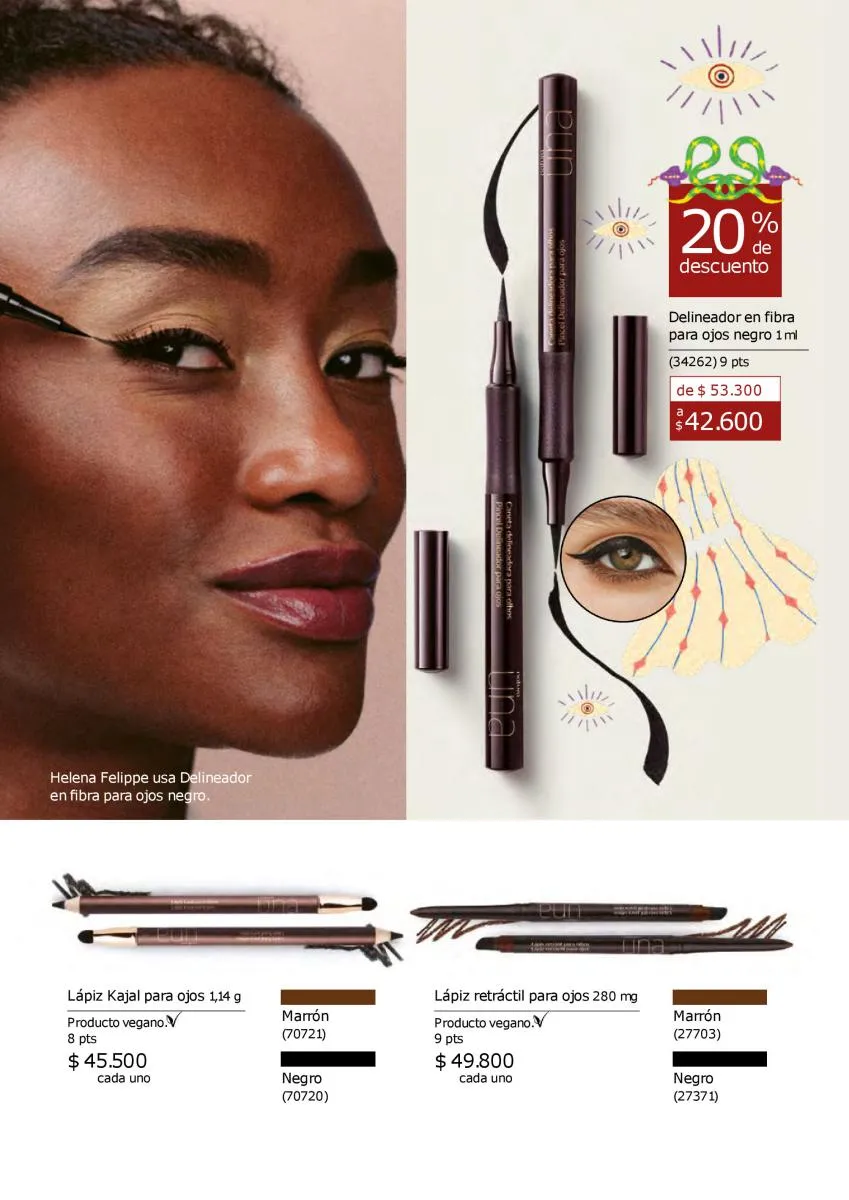 Para empezar, descubre la línea Una, con las mejores bases fluidas, para diversidad de pieles, de calidad vegana y con descuentos interesantes. Para resaltar tu mirada, los mejores delineadores, kits de maquillaje para cejas, primer y pestañinas de super alargamiento.