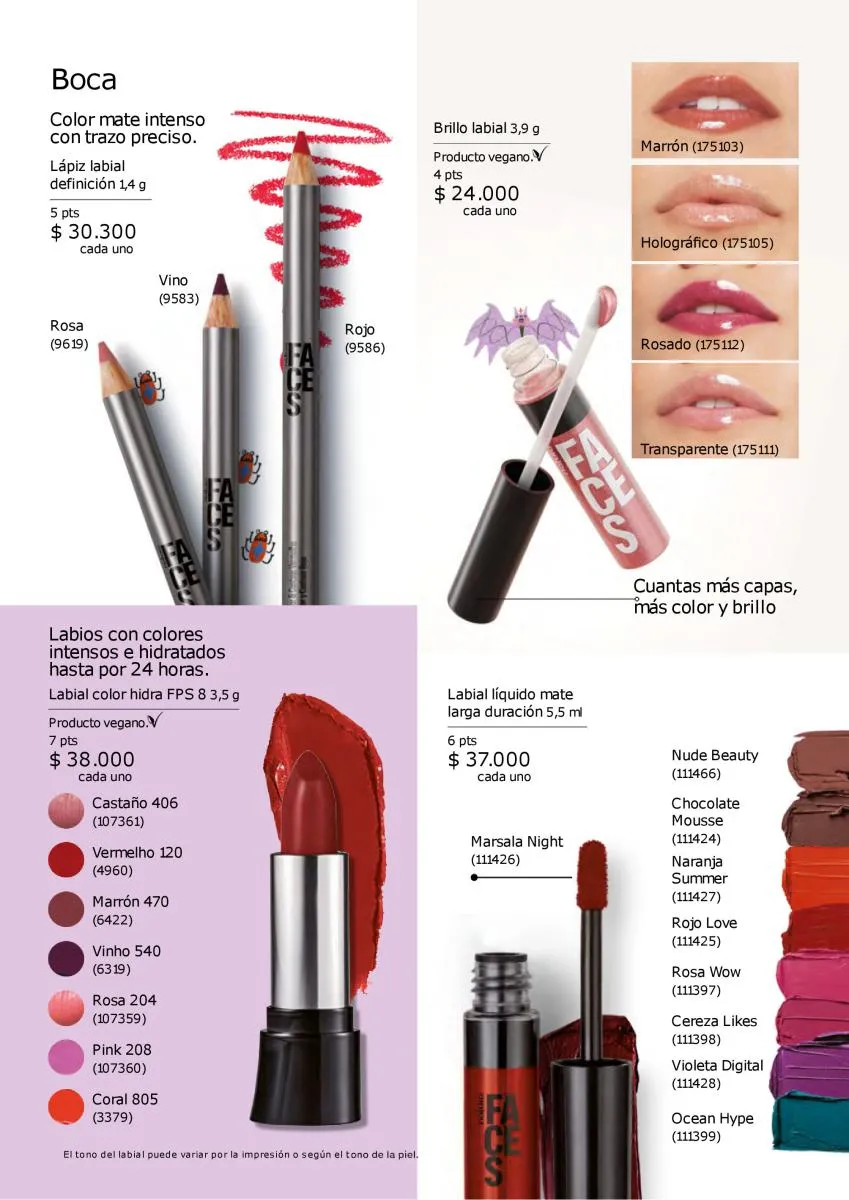 Y para los labios, los mejores colores y delineadores, con hasta 10 beneficios y los más intensos colores, con tecnología de partículas.