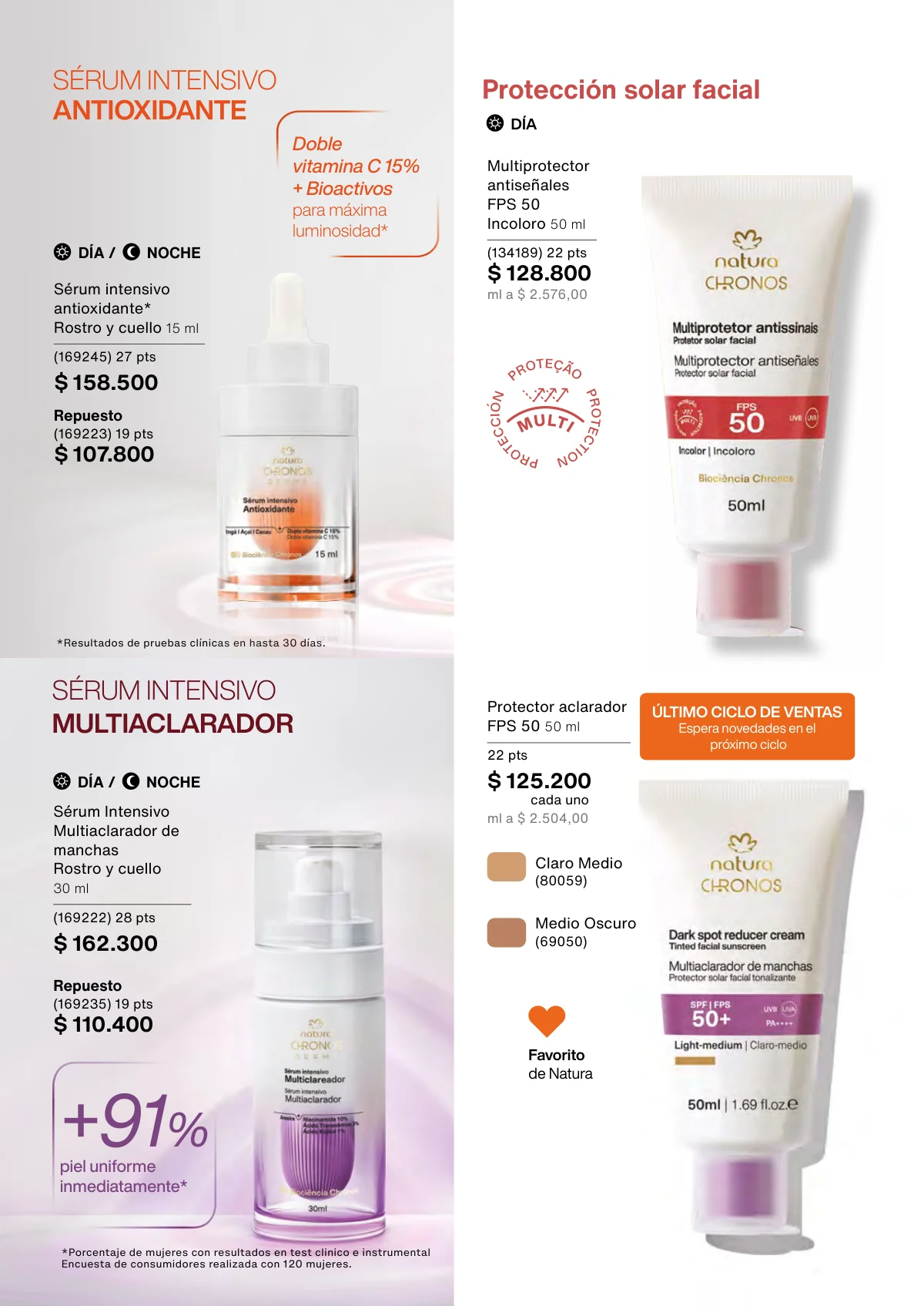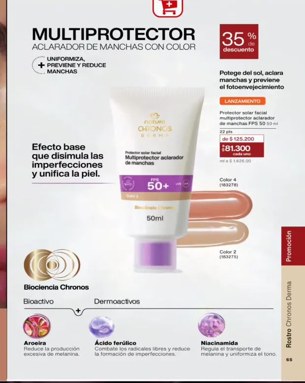 Un ejemplo excelente las cremas y jabones de Chronos o su sérum intensivo multiaclarador.