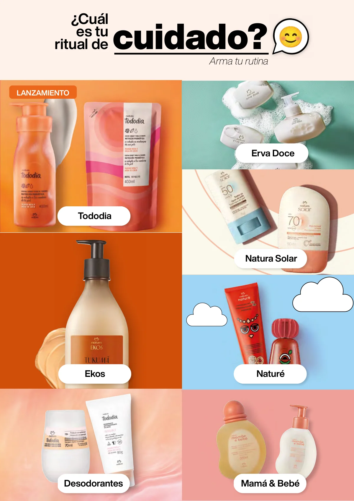 Las rutinas de cuidado diario de rostro y cuerpo son infaltables esta temporada. No olvides consultar lo que tus marcas favoritas de Natura traen este mes.