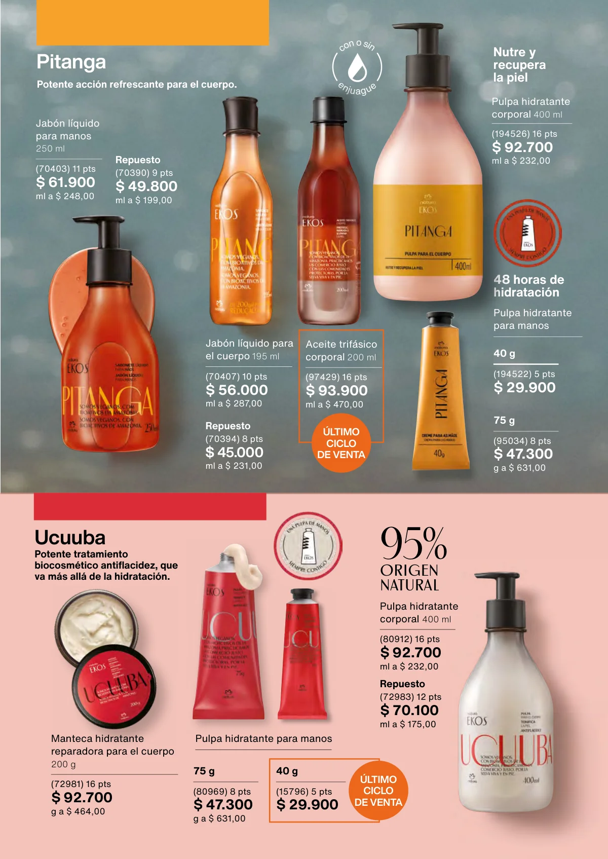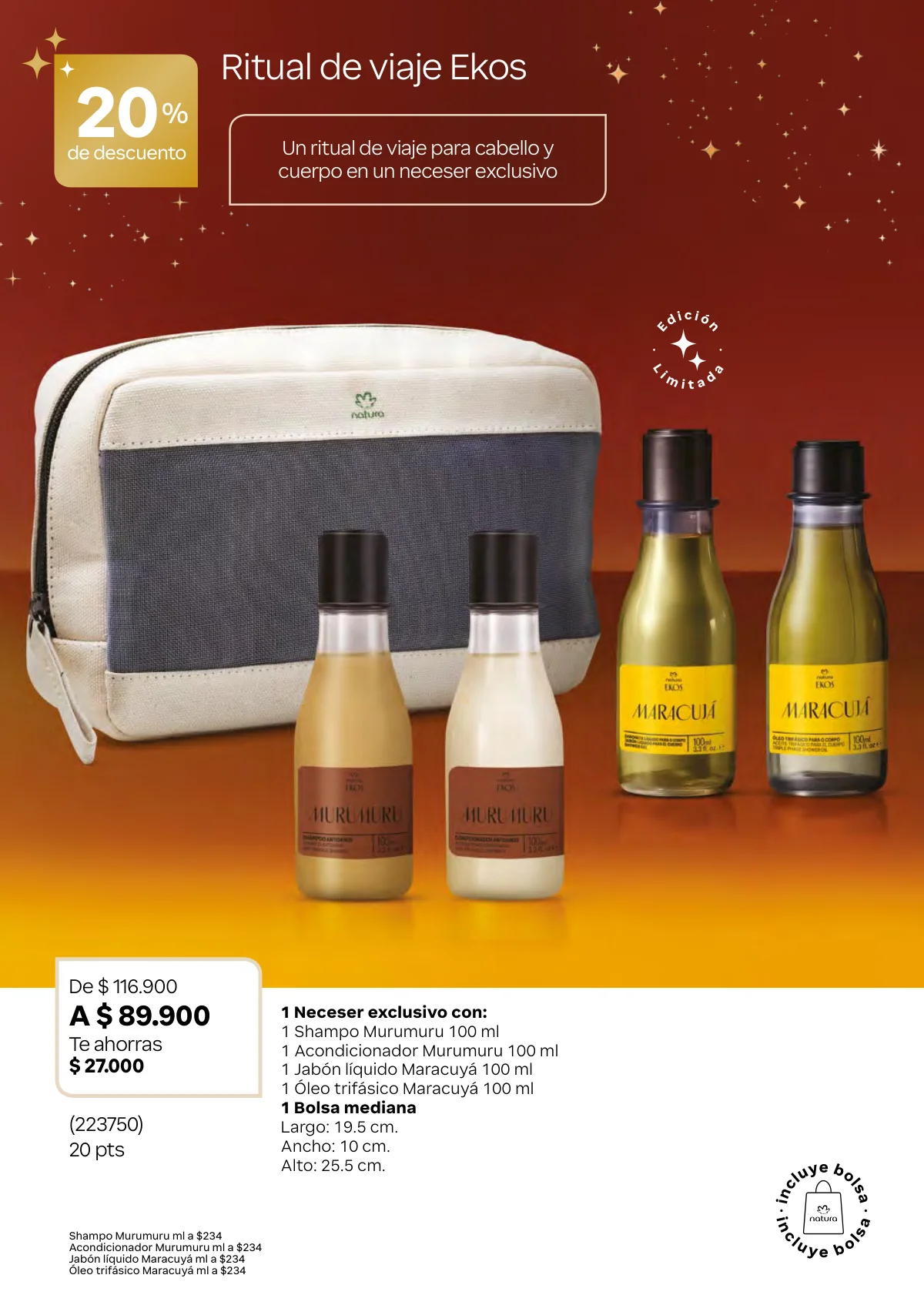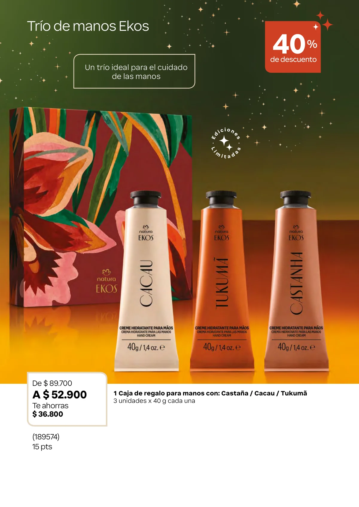 Esta es la campaña que trae los mejores regalos para ti y tus seres queridos. Ekos tiene excelentes presentaciones de tratamientos para el cabello de Murumuro (pág. 30). Y para el cuerpo la fragancia de Maracuyá es otra infaltable al pesar en hidratantes o cremas de manos.