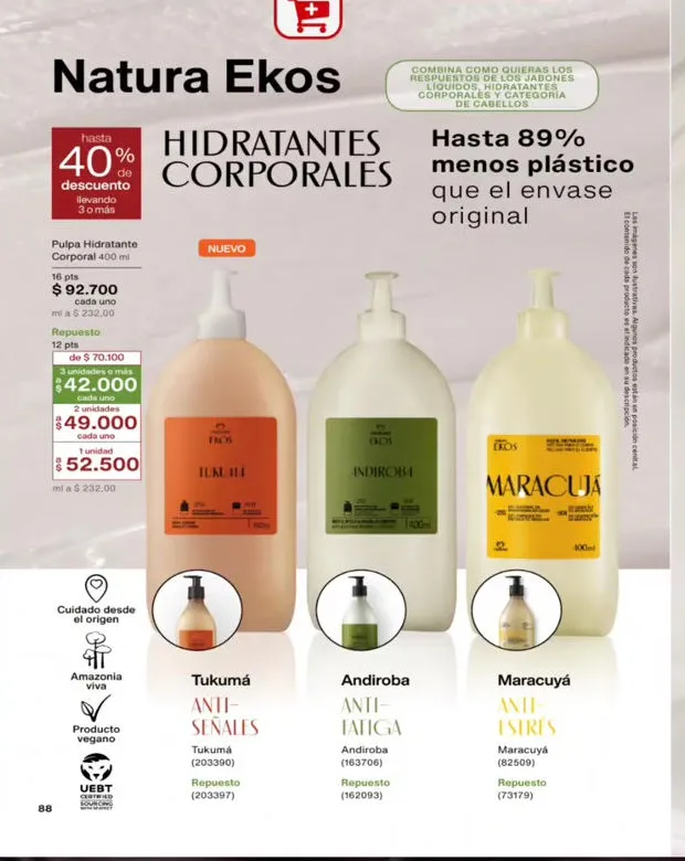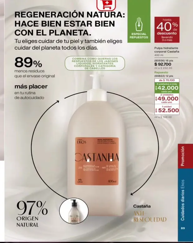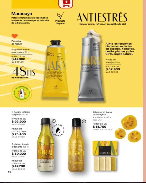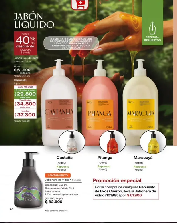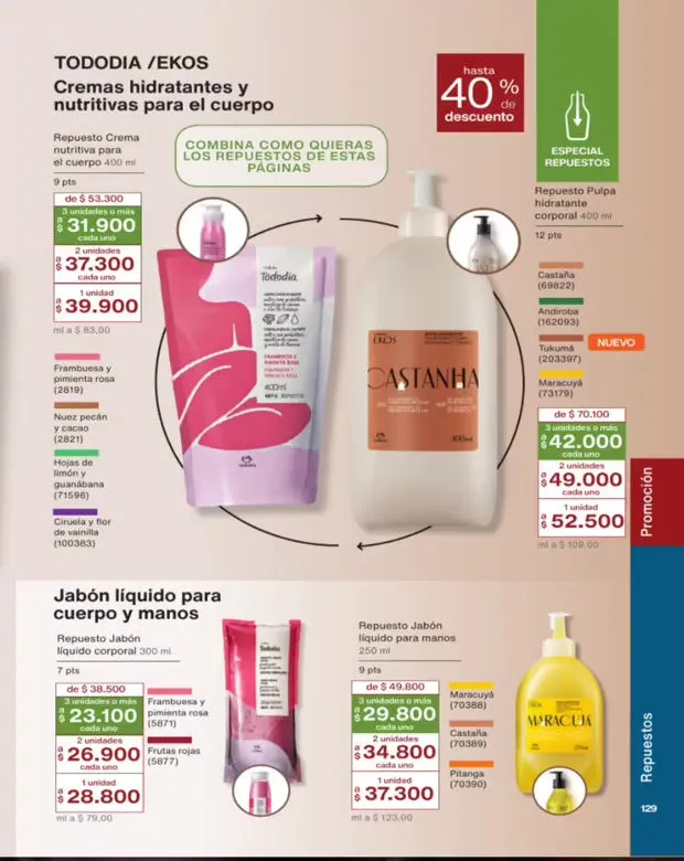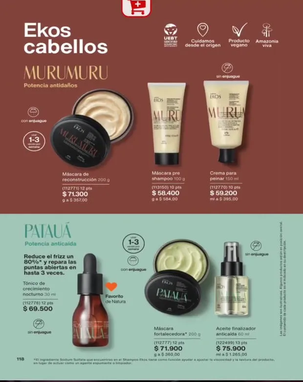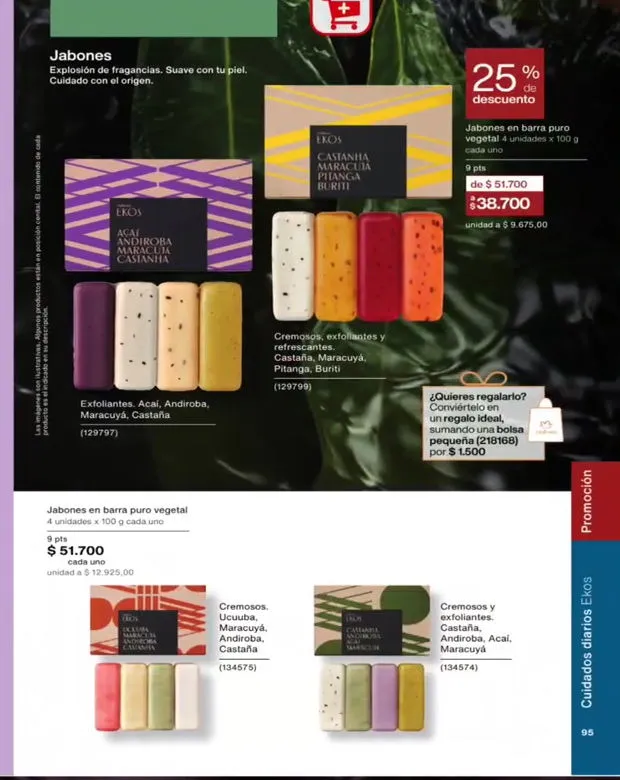Esta es la campaña que trae los mejores regalos para ti y tus seres queridos. Ekos tiene excelentes presentaciones de tratamientos para el cabello de Murumuro (pág. 30). Y para el cuerpo la fragancia de Maracuyá es otra infaltable al pesar en hidratantes o cremas de manos.