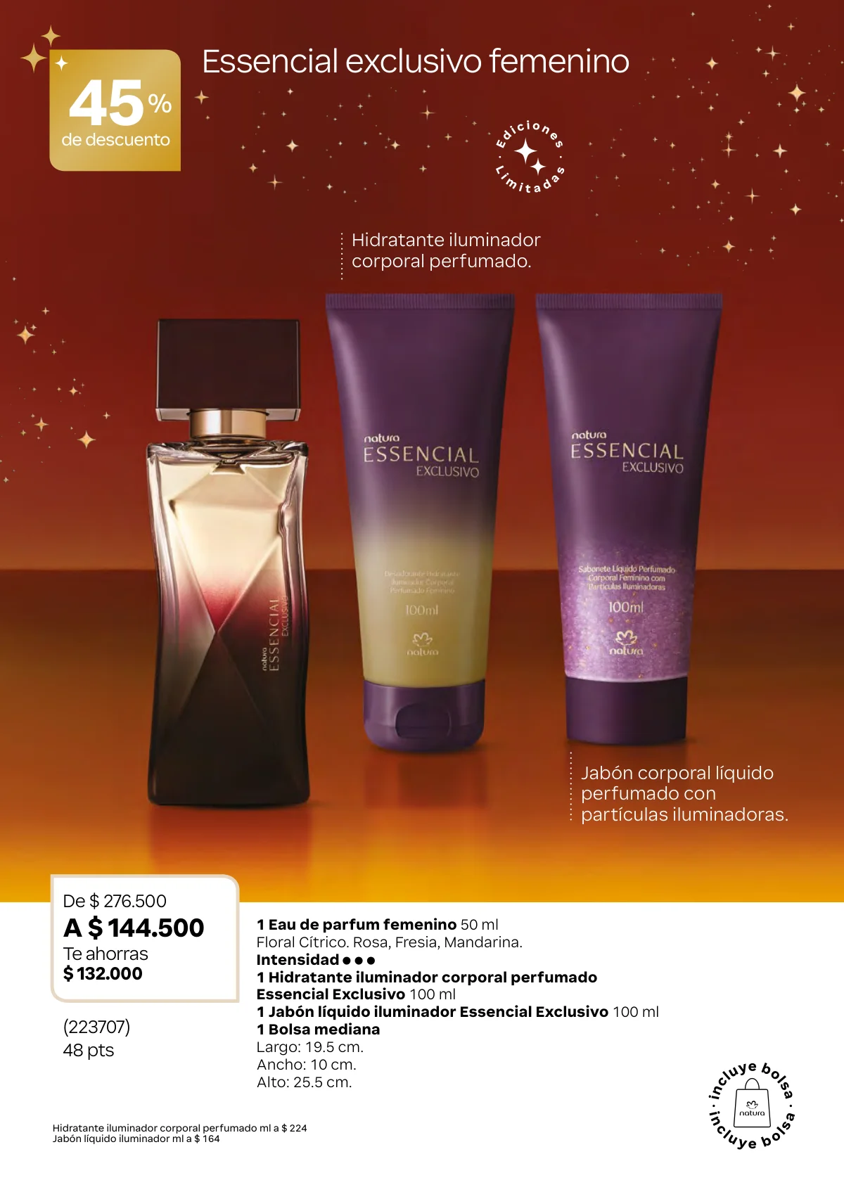 - Preparar el regalo especial para ese caballero de tu vida con Essencial Oud en su dúo de Eau de Parfum y shampoo a un 45% de descuento. Y para dama lleva la fabulosa combinación con aceite