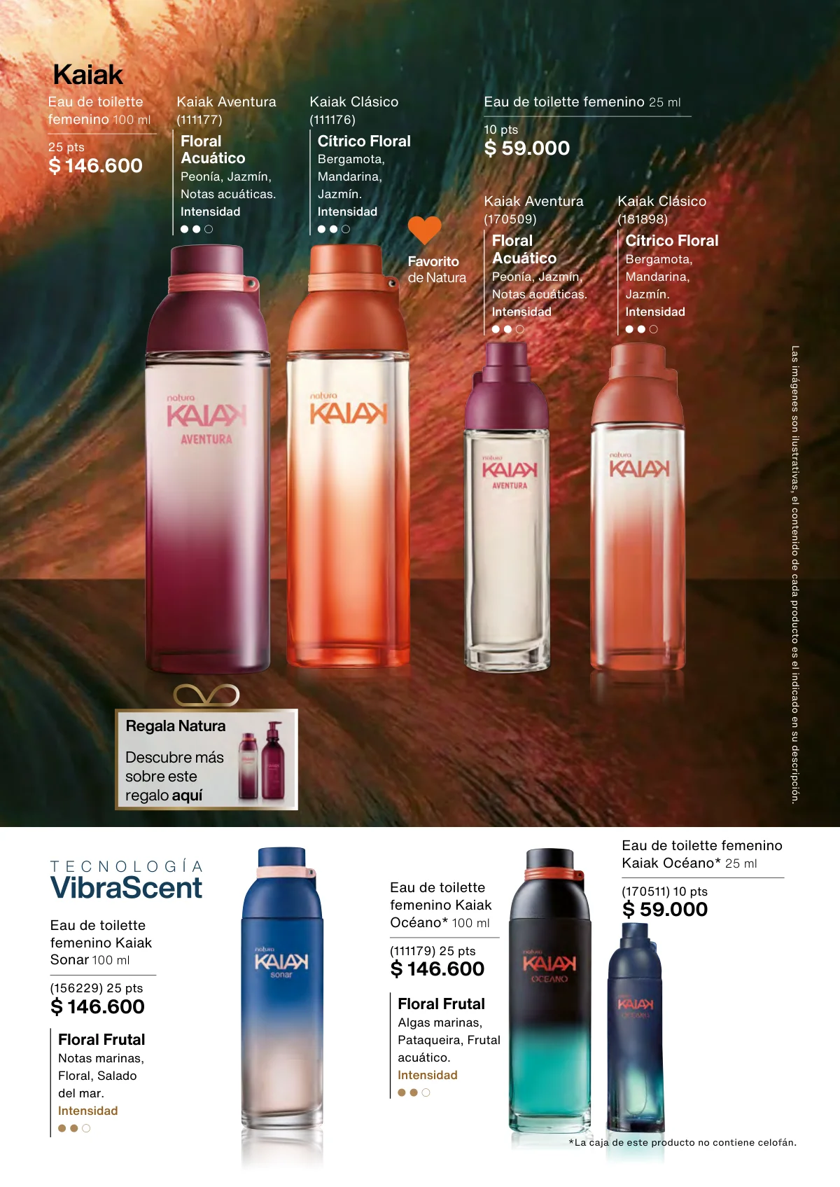 Hay mucho más en fragancias de Kaiak, Biografía, Humor, Aguas y hasta el refrescante corporal de Tododia que no puedes dejar de incluir en tu lista de regalos de esta catálogo Natura 17 2025.